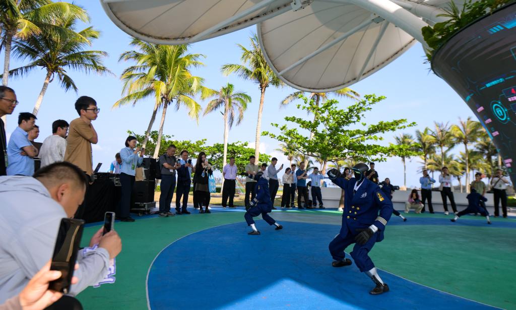 3月25日,人形机器人在博鳌亚洲论坛2026年年会会场打太极拳。新华社记者 杨冠宇 摄