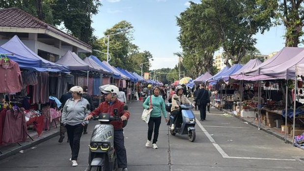 去年11月,礼拜街从一条小街道扩宽为一个片区,连同站前路北侧东、西广场5200平方米的闲置地块被改造成专门摆卖区,约600个摊位实现“一人一证、按号入位”。同时,还划分“潮汐区”设置爱心义卖摊位专供周边卖自种菜的老人、低收入人群使用,带动他们增收。当前所有摊位均已抽签登记使用,摊位井然有序、人群熙熙攘攘,烟火气十足。