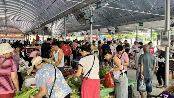 2025年3月,三洲墟正式启动整体改造提升工作,聚焦停车场建设、蔬果街改造升级、展望公园场地平整等重点推进各项工程,同年8月,所有基础设施建设已基本完工。次月,启动三洲墟摊位规范化整体规划工作,并于2025年年底全面完善经营布局与管理制度,三洲墟焕然一新。如今墟市内摊位整齐划一、分类规范,新增680个车位供车辆停放,34名保洁人员常态化维护墟市环境。每逢墟日,日均客流量达3万余人次,居民游客在绿树成荫的公园里边逛边买,惬意悠然。这种“公园+集市”的模式,实现了生态价值与经济价值的双向转化。