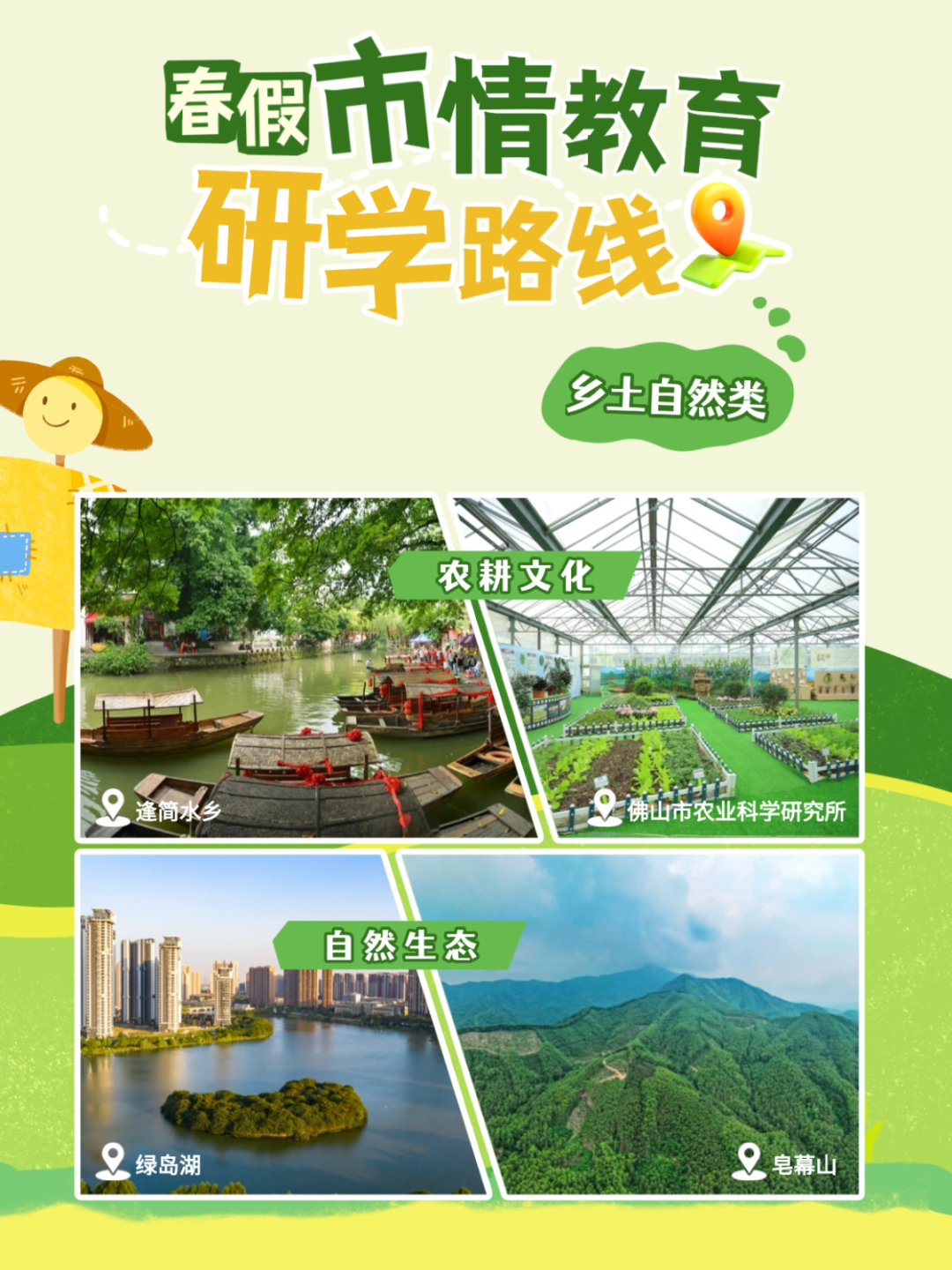路线特色:探访“广东周庄”水乡风貌,了解桑基鱼塘传统农业模式与现代农业融合发展路径,体验鱼塘养殖、农作物采摘等劳动,结合历史农耕文化、科学生态循环知识,落实劳动与乡土教育。