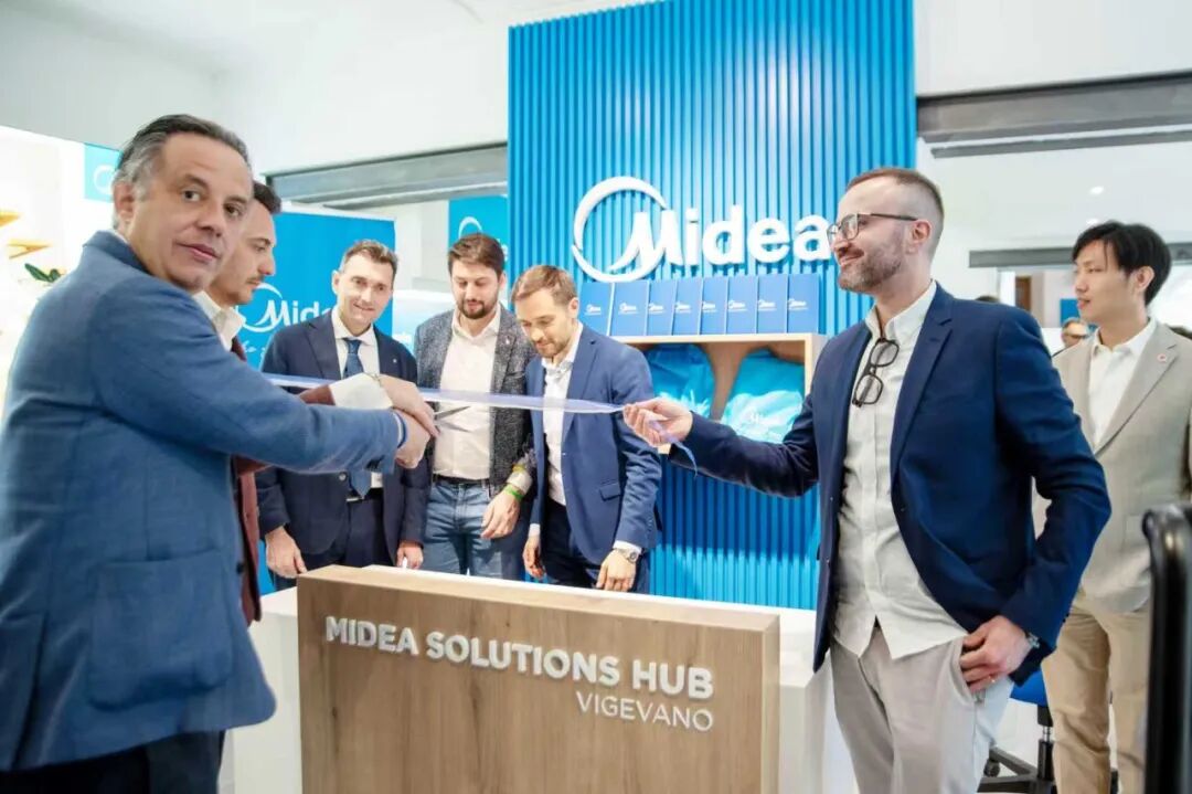 Midea Solutions Hub:美的与当地伙伴共建的零售与展厅网络,既是产品展示与定制空间,也是安装商的取货中心,提升日常运营效率。美的意大利最新 Solutions Hub 已于展会前正式启用,邀请了维杰瓦诺市市长 Andrea Ceffa 以及伦巴第大区议会议员 Andrae Sala 共同见证开业仪式。