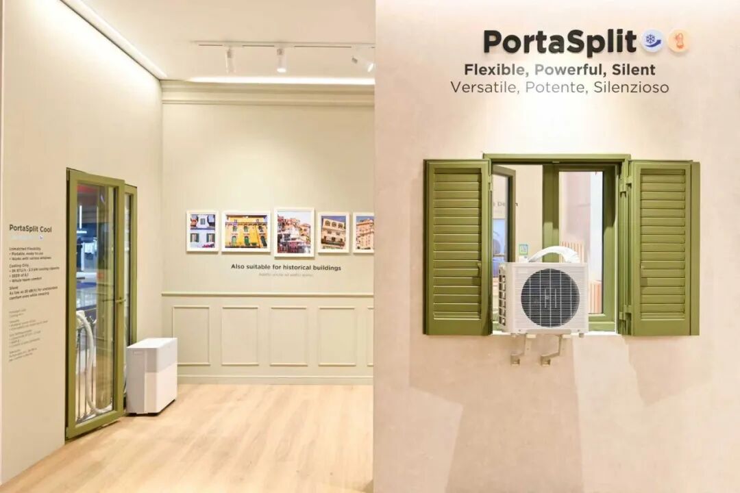 此外,亮相的还有入选《时代》杂志“2025最佳发明”(TIME Best Inventions 2025)的PortaSplit 系列及新品 PortaSplit Cool,着重展示了其不逊分体空调的制冷能力和对意大利历史建筑的适配性。ProtaSplit 系列产品因其灵活适配欧洲多样建筑窗型、低噪音与快速安装流程,收获用户与渠道商一致好评。