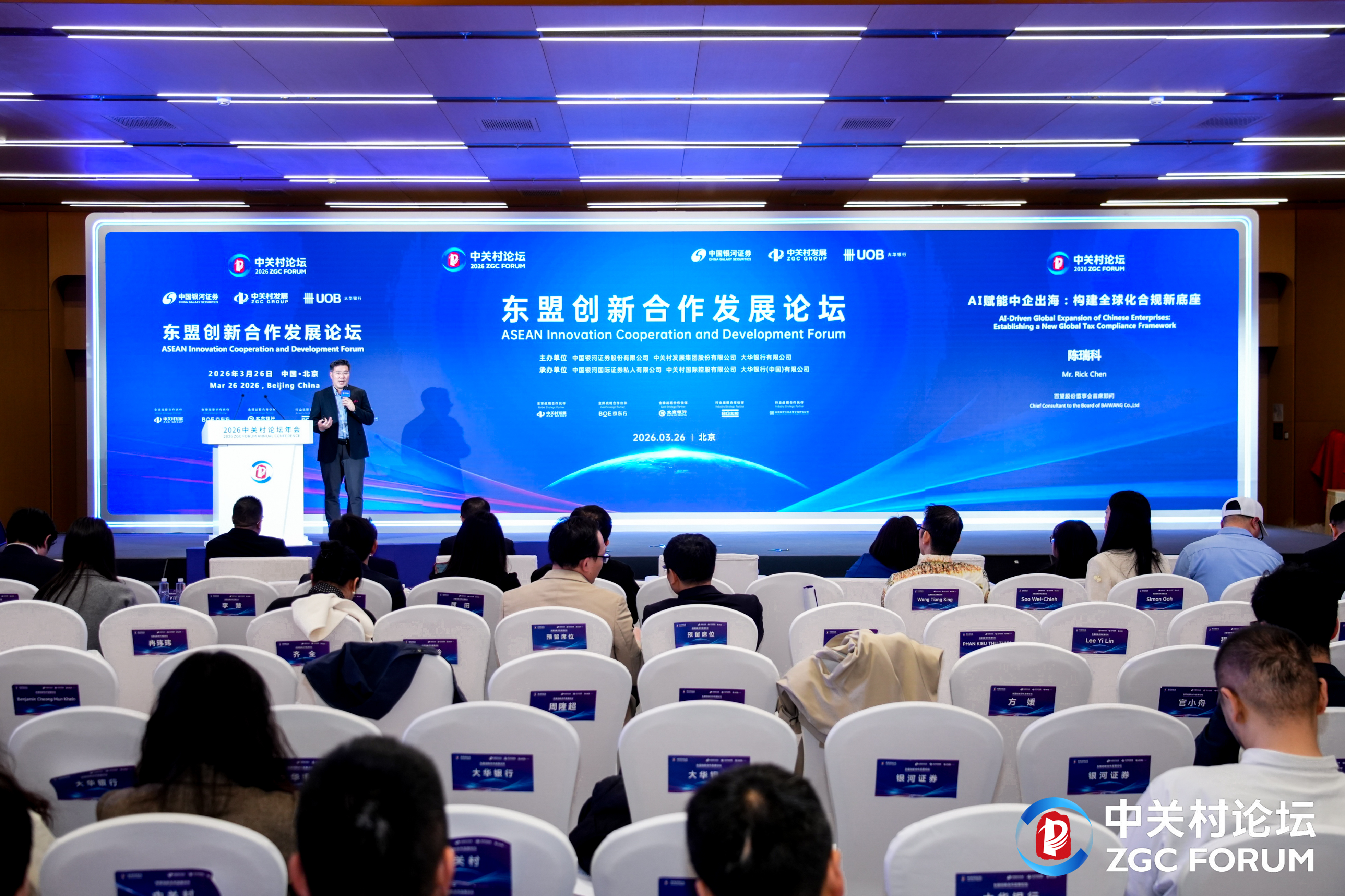 2026年3月26日下午,作为2026中关村论坛年会的重要组成部分,“东盟创新合作发展论坛”在中关村国际创新中心举行。论坛以“聚势创新生态,携手东盟未来”为主题,紧扣《中国—东盟全面战略伙伴关系行动计划(2026—2030)》部署,汇聚中国与东盟各国政要、行业领袖及专家学者,共商跨境创新合作大计。