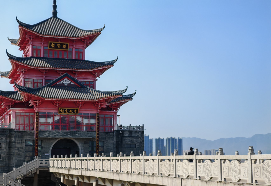 被誉为“西江小岳阳楼”三水聚贤楼位于佛山市三水区白坭镇沙围村西江畔,是一座以贤文化为主题的红色复古观景楼,总高四层,外观以中国红为主调,搭配斗拱飞檐、灰脊翘角,传统韵味十足。四层观景台可270°俯瞰西江、雁鹅沙香蕉岛及思贤滘三江汇流胜景。