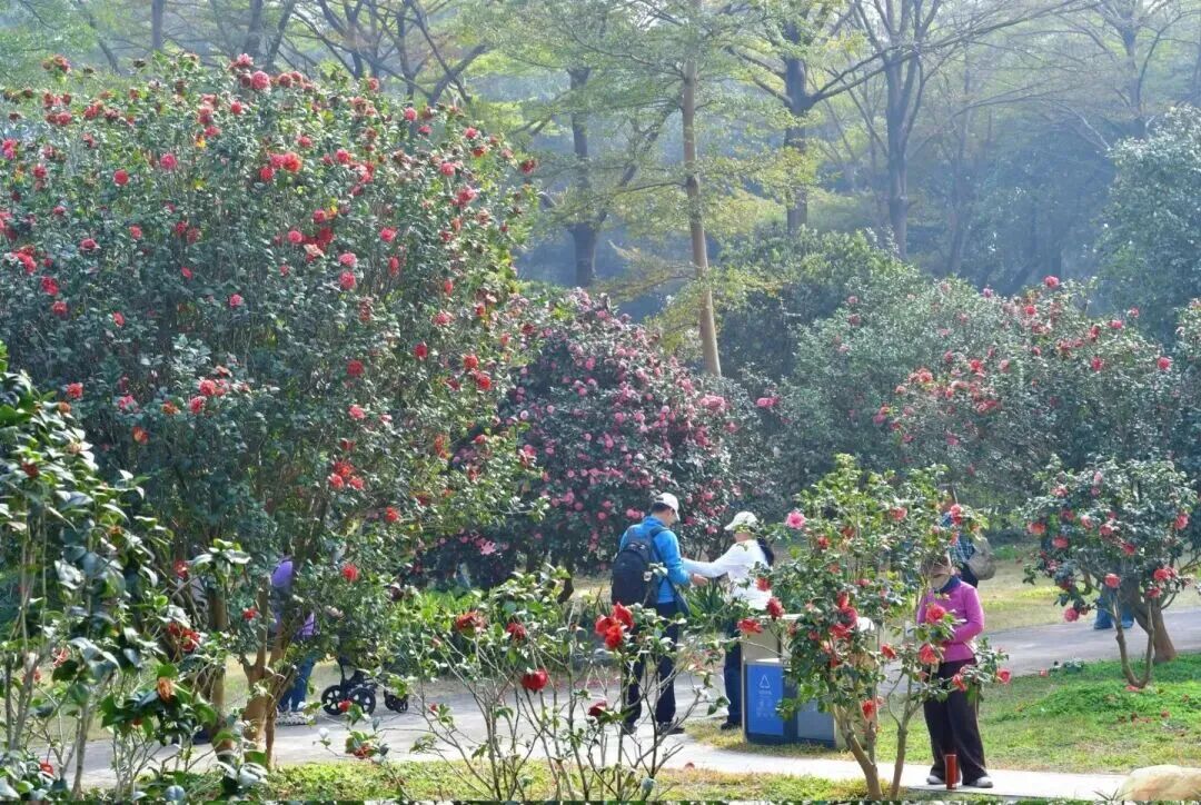 作为华南数一数二的茶花基地,这里能看到全球80%的茶花品种,“十八学士”“鸳鸯锦”等珍稀品种藏在其中,漫步300亩花坡,仿佛闯入莫奈花园。
