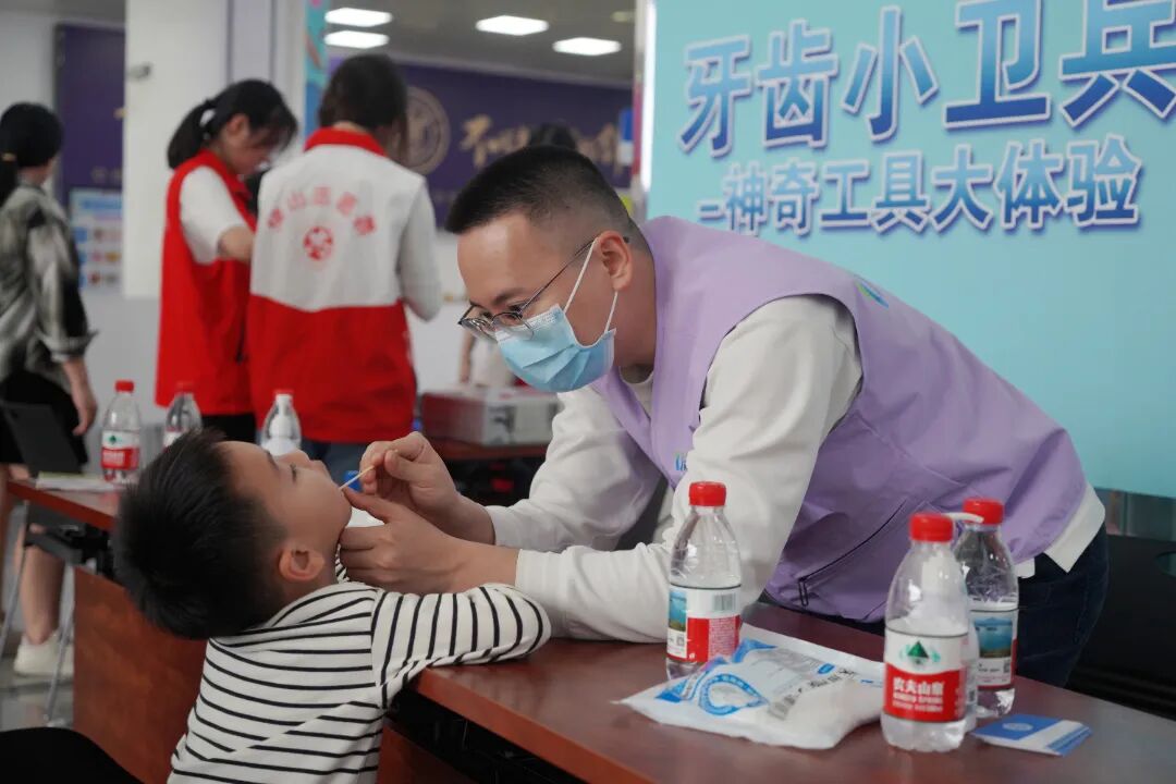 活动现场热闹非凡,六大寓教于乐又富有深远教育意义的游戏关卡精彩纷呈,牢牢吸引着每一位参与者的目光。 “小小科学家-饮料酸性大揭秘”关卡,仿佛将大家带入了一个神秘的化学实验室。在这里,参与者手持PH试纸,饶有兴致地测量不同饮品的酸碱度。随着试纸颜色的变化,大家逐渐了解到,原来不同饮品对牙齿有着各异的影响,酸性饮品可能悄悄侵蚀牙齿,而碱性饮品则相对友好。 “勋章收藏家-亮出你的护牙勋章”关卡则充满了创意与温情。参与者可以尽情发挥自己的想象力和创造力,亲手制作独一无二的牙齿徽章。在这个过程中,大家不仅锻炼了动手能力,更深化了对牙齿的认知与关爱。 此外,活动现场还有丰富多样的体验与挑战。“牙齿小卫兵”体验区,让参与者亲身感受现代科技为口腔健康带来的便捷与高效;“刷牙大作战-打败牙菌斑怪兽”关卡,则是一场技能的比拼,大家在紧张刺激的氛围中,巩固了正确的刷牙方法。 还有12关“爱牙游戏”,为参与者提供了充分的动手实践机会,让大家在玩乐中学习口腔健康知识;“健康小侦探-谁藏了糖宝宝”环节,更是通过直观的方式,揭示了饮料中隐藏的糖分危机,令人印象深刻。 每一环节都经过精心设计,以轻松愉快的方式,将口腔健康的宝贵知识如春风化雨般渗透进每一位参与者的心田。让健康理念在欢声笑语中生根发芽,最终绽放出绚烂的健康之花。 口腔健康是身心健康的重要组成部分,也是幸福生活的重要保障。佛山大学附属口腔医院(佛山市口腔医院)·佛山市牙病防治指导中心将继续发挥专业优势,推动口腔健康知识的普及,为全市人民的口腔健康保驾护航。让我们携手重视健康口腔,共同迈向充满幸福的美好未来!
