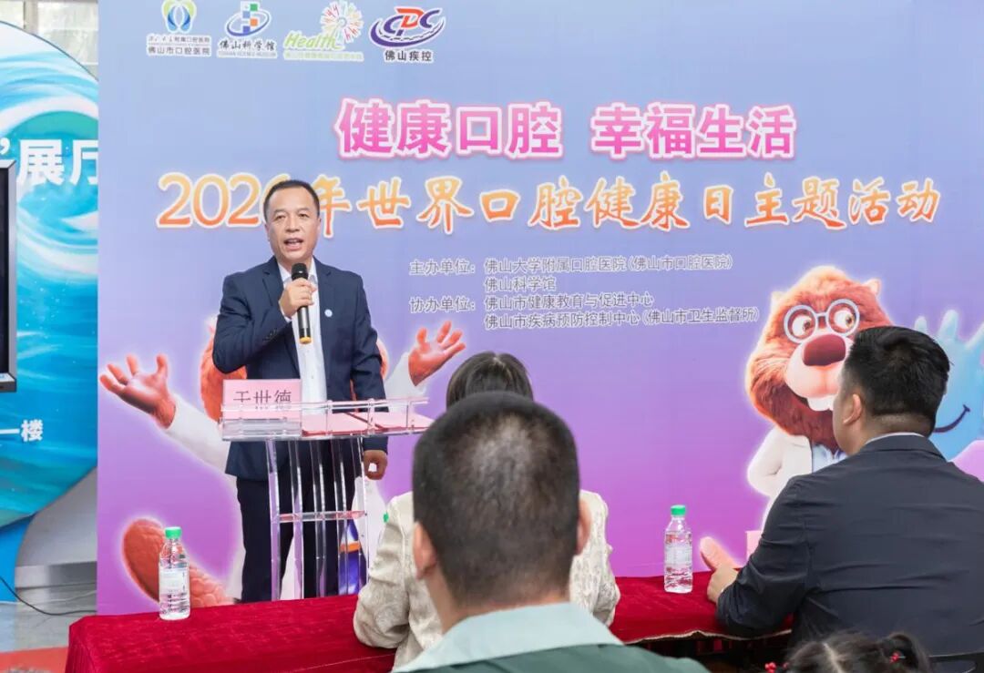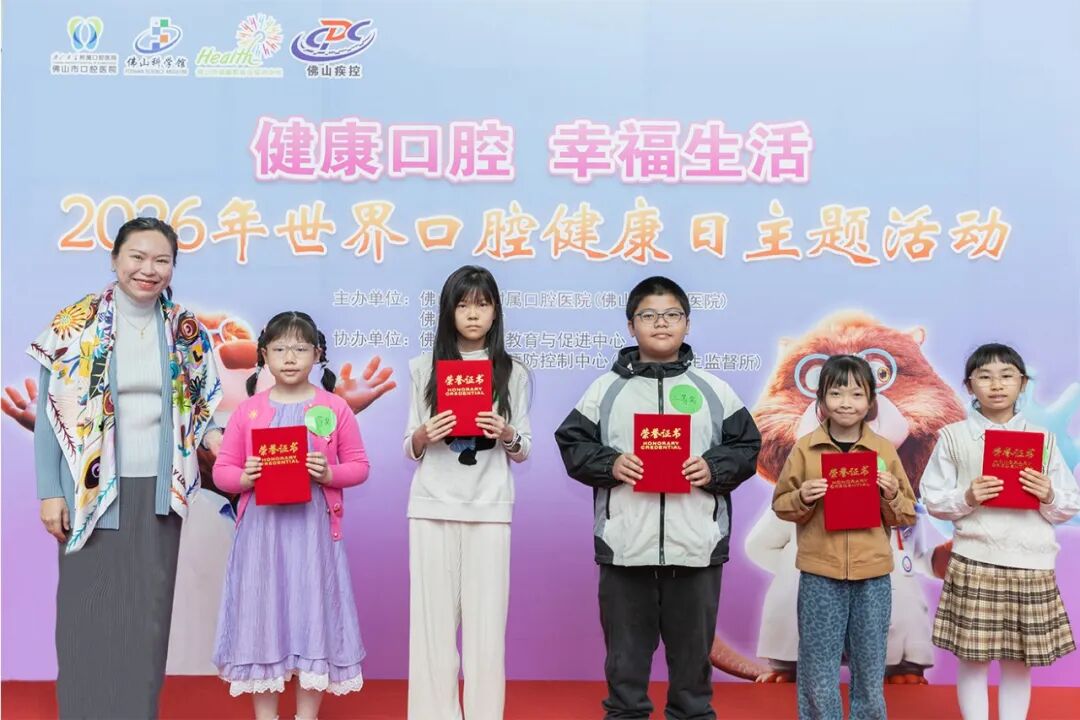 为响应中华口腔医学会关于开展FDI“世界口腔健康日”活动倡议,由佛山大学附属口腔医院(佛山市口腔医院)·佛山市牙病防治指导中心联合佛山科学馆主办,佛山市疾病预防控制中心(佛山市卫生监督所)、佛山市健康教育与促进中心协办的“2026年世界口腔健康日”主题活动于3月22日在佛山科学馆一楼大厅开展。 今年活动的主题是“健康口腔 幸福生活”。旨在提醒着每一个人切实将口腔健康维护纳入日常健康管理的范畴。 活动伊始,佛山大学附属口腔医院(佛山市口腔医院)·佛山市牙病防治指导中心党委书记于世德致辞,他深入阐释了口腔健康与全民健康的内在联系关系,并呼吁社会各界携手并进,共同构筑口腔健康知识的普及之桥。 紧接着,活动进入了2025年佛山市小学生爱牙知识手抄报比赛颁奖环节。2025年佛山市小学生爱牙知识手抄报比赛共征集2054份手抄报作品。经过专家评审团严谨评审,评选出优秀组织学校及一、二、三等奖与优胜奖若干。这些作品既展师生才华创意,更传口腔健康要旨。同时为提升全民口腔健康意识注入新活力,具有深远的社会意义。
