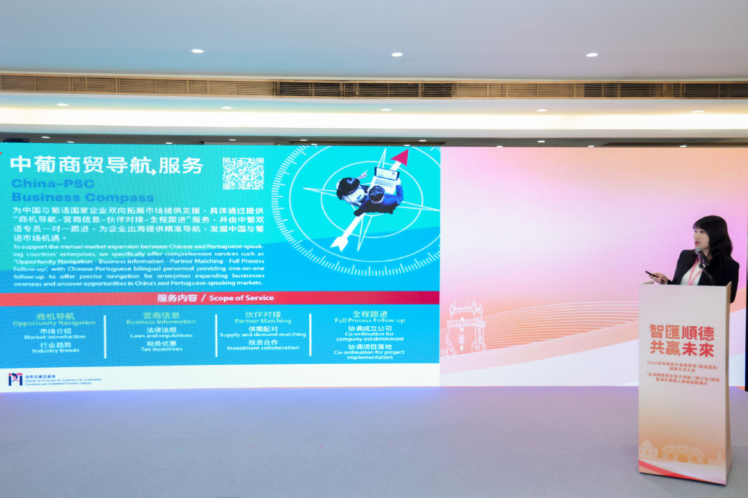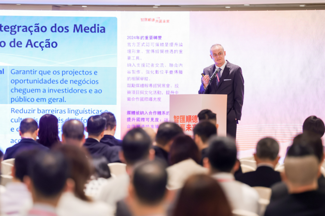在经贸推介环节,顺德区招商局局长黄保华全面解读了顺德的产业优势、投资机遇和人才政策,向全球发出“牵手顺德、兴业顺德”的诚挚邀约。中葡论坛常设秘书处辅助及葡语市场促进厅主管陈杜嘉玲、澳门盛世集团首席运营官Roland Schoorl、澳门葡英传媒协会创会成员彭祖匡等先后登台,从政策、市场、文化等多维度推介葡语国家的合作潜力。