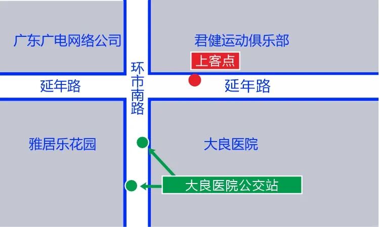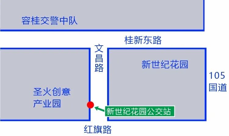 (备注:以下示意图中,红色圆点为清明专线上车点位置)