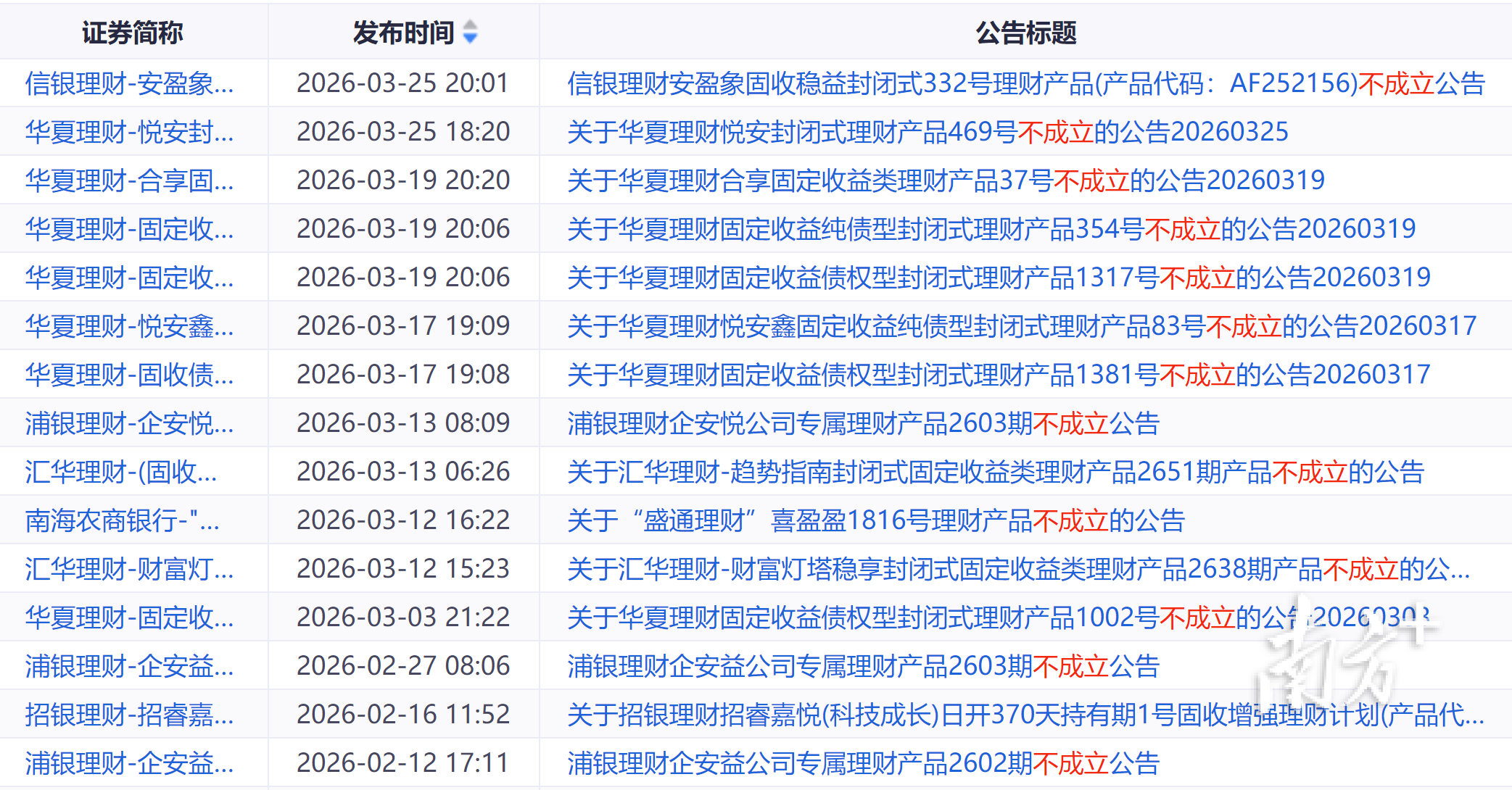 以前,银行理财产品被认为是“稳稳的幸福”的理财代表,有着属于自己的一批忠实拥趸。但如今,“稳稳的幸福”因为收益率不高,或正在被投资者抛弃。据同花顺iFinD统计,年初至今,共有30款产品因为发布了“不成立”公告。