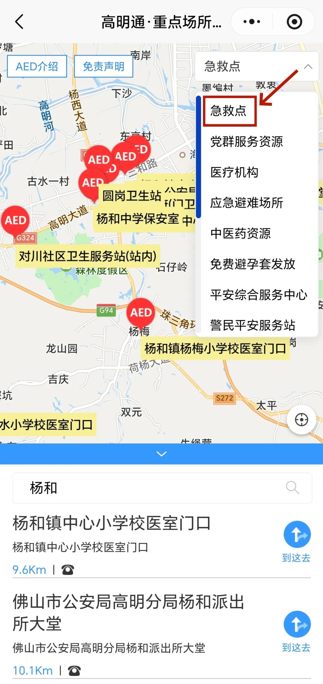 一键导航到达!杨和市民身边最近的急救点→
