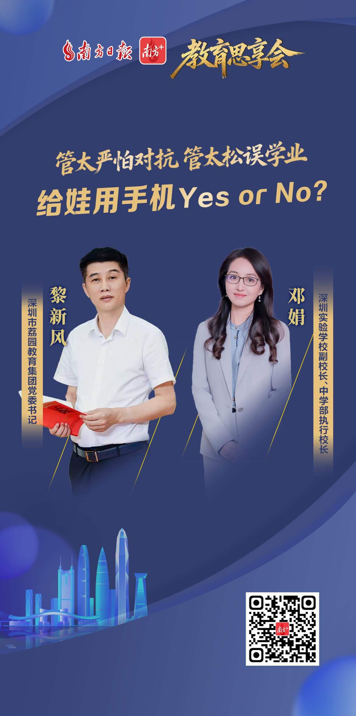 近日,在南方日报教育思享会上,深圳实验学校副校长、中学部执行校长邓娟,深圳市荔园教育集团党委书记黎新风,围绕中小学生手机管理这一热点话题,分享了学校做法与家庭教育建议,为 “要不要给孩子用手机”“该怎么科学管理”等 提供清晰思路。
