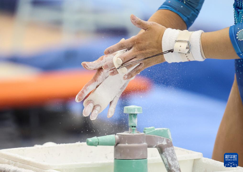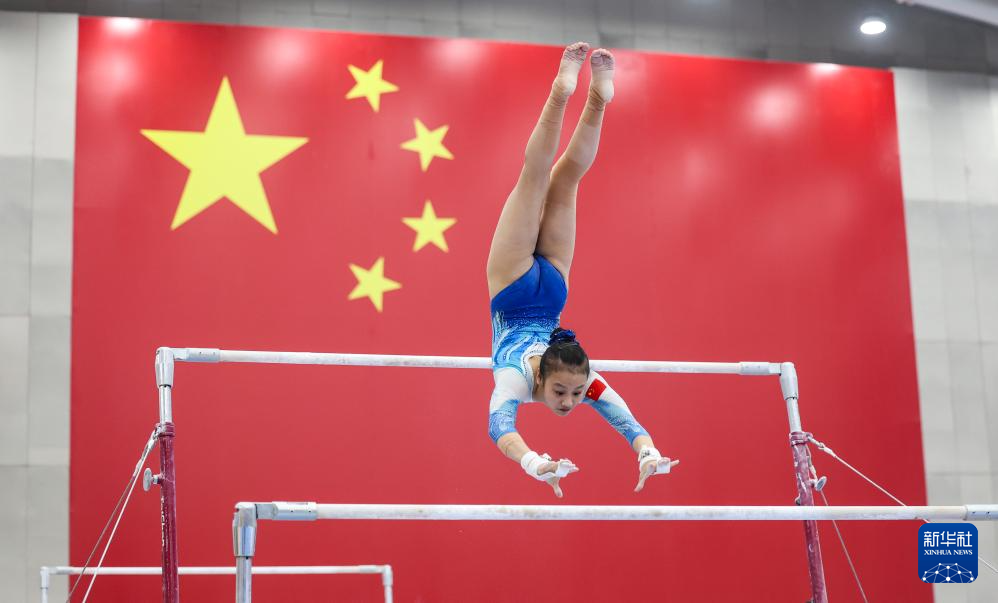 3月26日,邱祺缘在高低杠测试前。