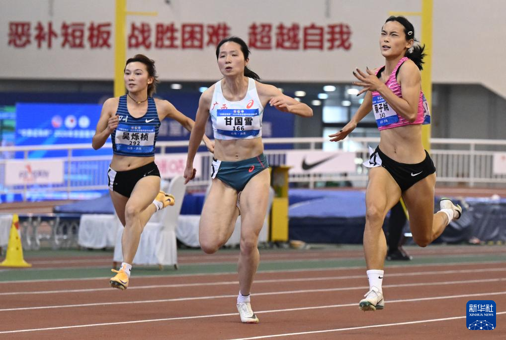 3月27日,广东队选手蔡子娴(右二)在女子60米预赛中。她晋级决赛。
