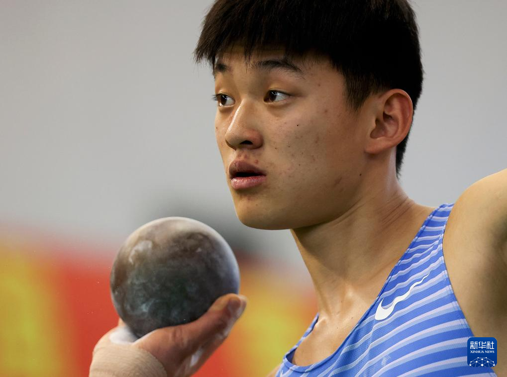 3月27日,吉林队选手陈兴华在男子七项全能铅球比赛中。
