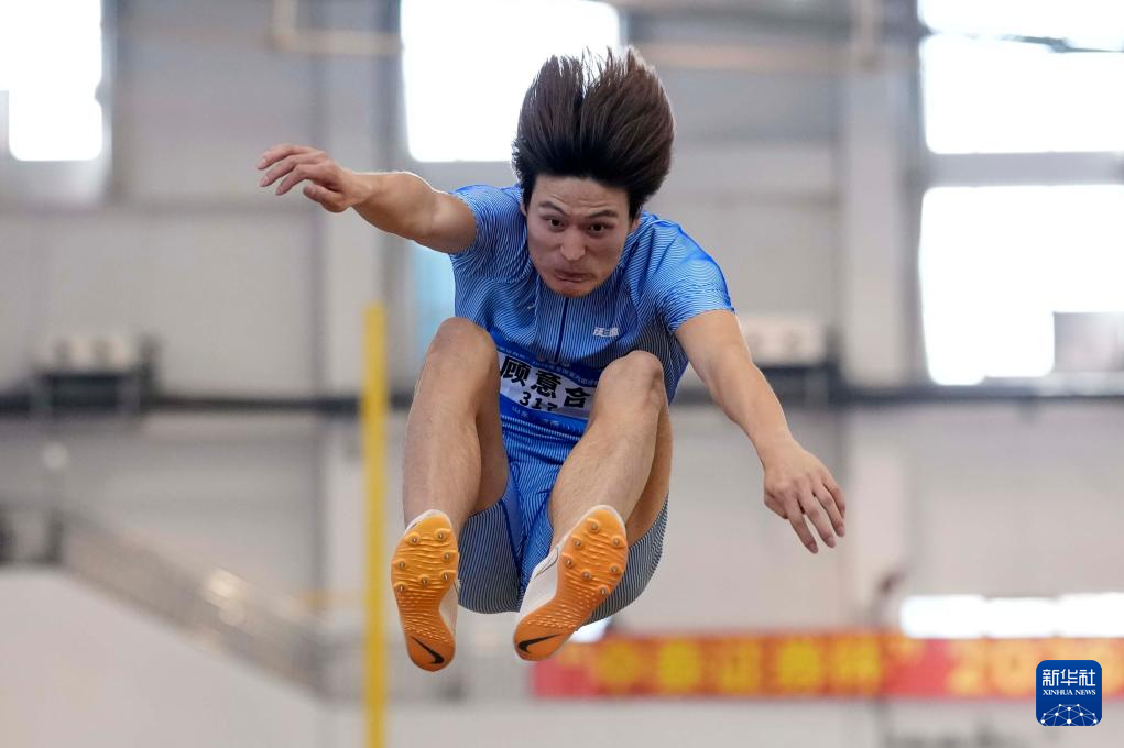 3月27日,天津沃兰迪队选手顾意合在男子七项全能跳远比赛中。