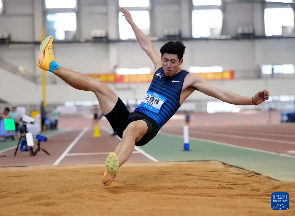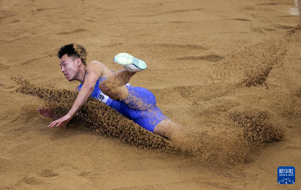 3月27日,四川队选手王佳伟在男子七项全能跳远比赛中。