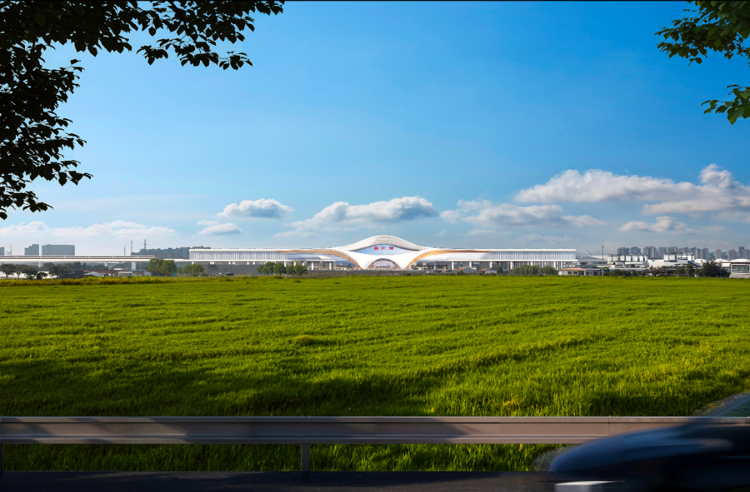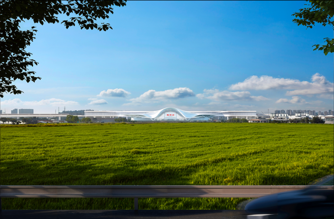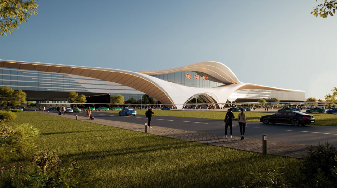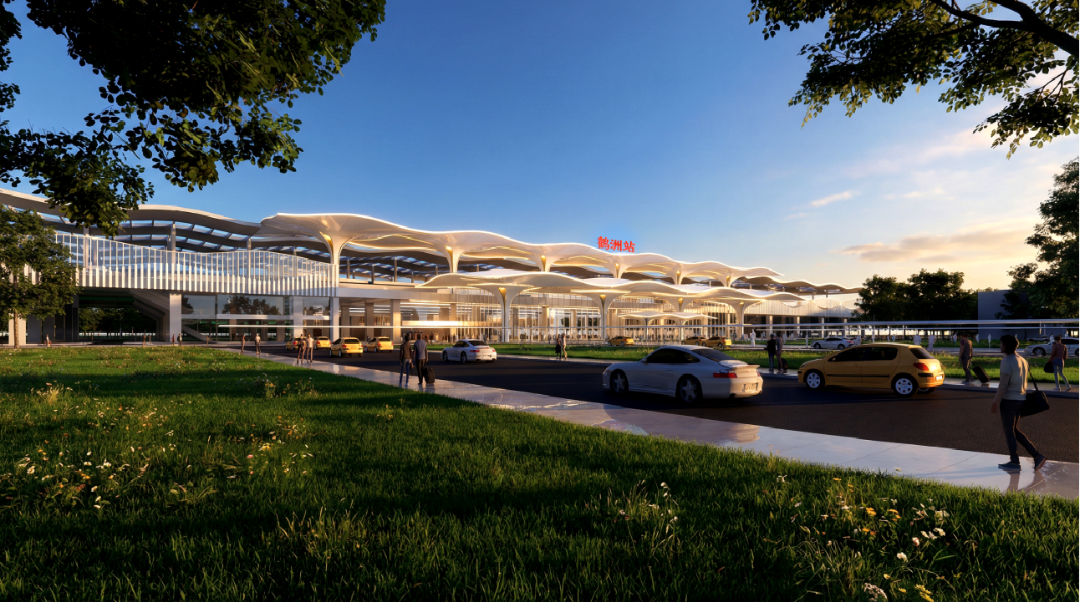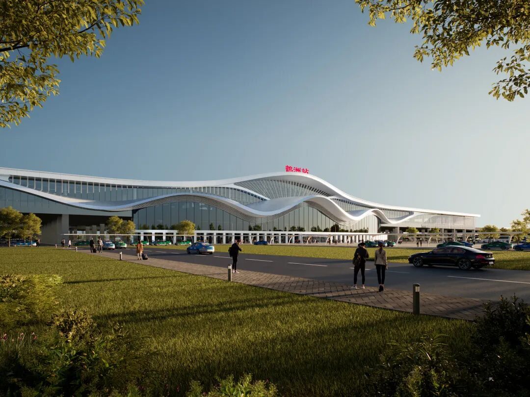方案以极具力量感的大跨度曲线勾勒出站房轮廓,高耸的中央顶棚如同仙鹤引吭高歌,向两侧延伸的起伏屋面则像其舒展的宽大羽翼。整座建筑呈现出一种强烈的向上升腾之势,形象地传达出鹤洲在高铁动力的助推下,正如同一只冲向云霄的白鹤,实现跨越式的发展与腾飞。