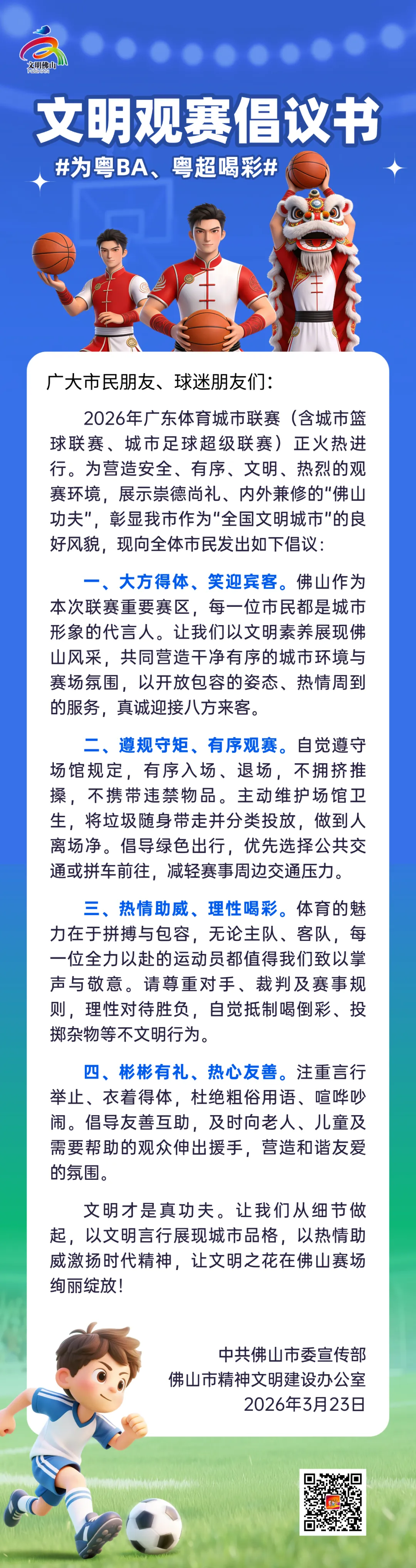 2026年广东省城市篮球联赛(佛山VS肇庆)将于3月28日在南海区桂城街道南海体育馆开展,为确保市民进场和离场有良好的体验,建议前往观看赛事的市民请尽量选择公共交通或徒步、骑行前往,若驾车前往的请规划好行驶路线,选择停车场停车后再选择公共交通或徒步前往观看。