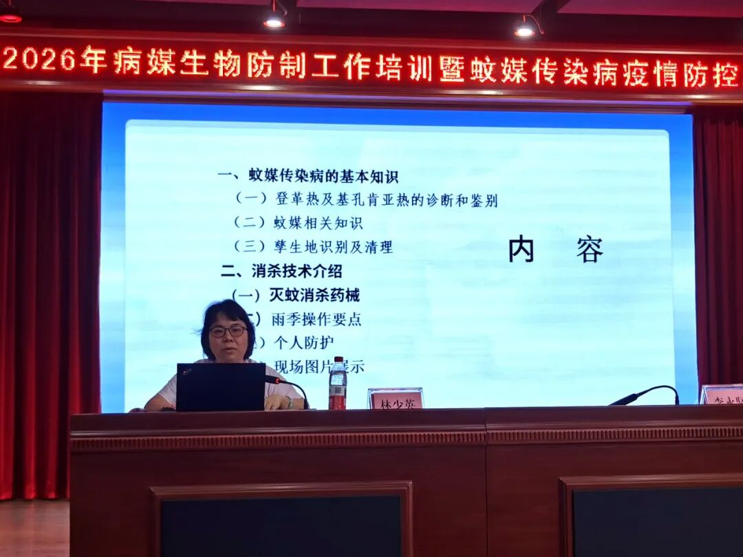 为提升参会人员专业防控能力,会议特意邀请区疾控中心专家开展专题培训,围绕蚊媒传染病防控核心知识、病媒孳生地清理要点、消杀药物科学选择与规范配比等关键内容,采用理论结合典型案例分析的形式,进行细致讲解,为全镇规范化防控工作提供了坚实的科学指导。