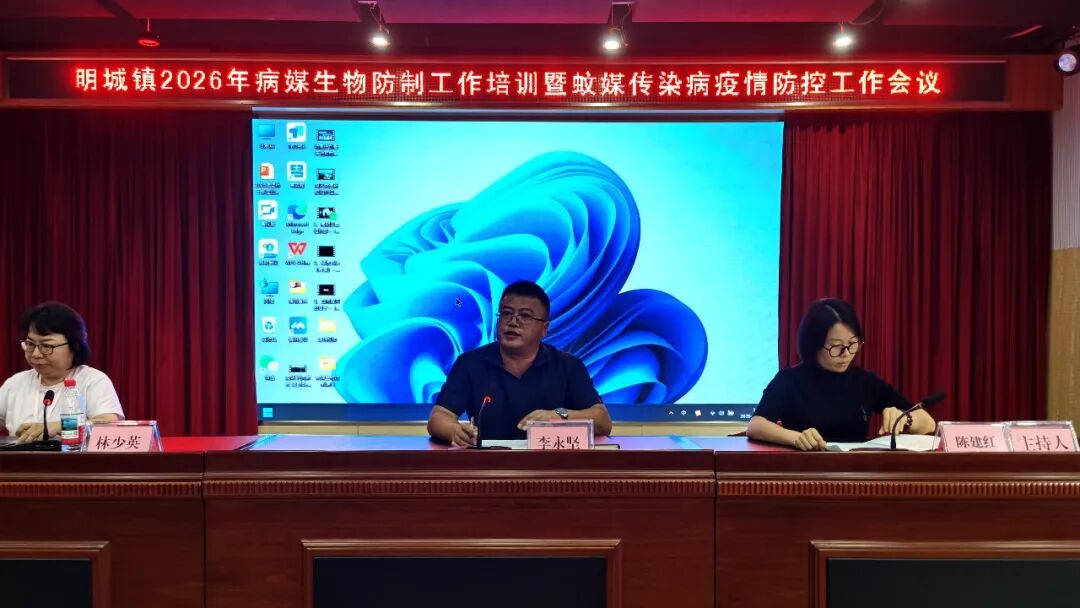为切实筑牢病媒生物防制防线,有效防控蚊媒传染病传播,全力保障辖区人民群众身体健康和生命安全,3月27日上午,明城镇召开2026年病媒生物防制工作培训暨蚊媒传染病疫情防控工作会议。全镇各办(所)、中小学及幼儿园、各村(社区)相关负责人员,办所驻村负责人等近70人参加此次会议。