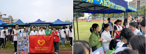 在佛山市荣山中学2026年第五届公益集市上,我院门诊医护志愿者与社工精心搭建服务展位,向同学们全面介绍医院志愿服务项目,分享医护人员参与公益的暖心瞬间,让青少年直观感受志愿服务的意义。