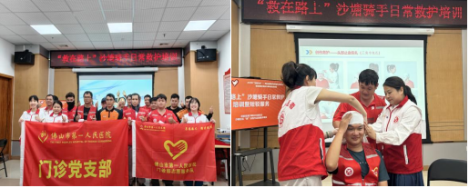 在祖庙沙塘社区骑手驿站,一场以“急救护骑手,温情暖归途”为主题的应急实操培训温情落幕。培训伊始,门诊党支部急救培训小组以短视频《别催单,你的外卖小哥在救人》引入,用真实案例触动在场外卖骑手。随后,结合骑手职业特点,针对常见伤口处理,通过手把手教学、互学互练等方式,指导骑手掌握止血、消毒、包扎等急救技能,切实提升其自救互救能力。