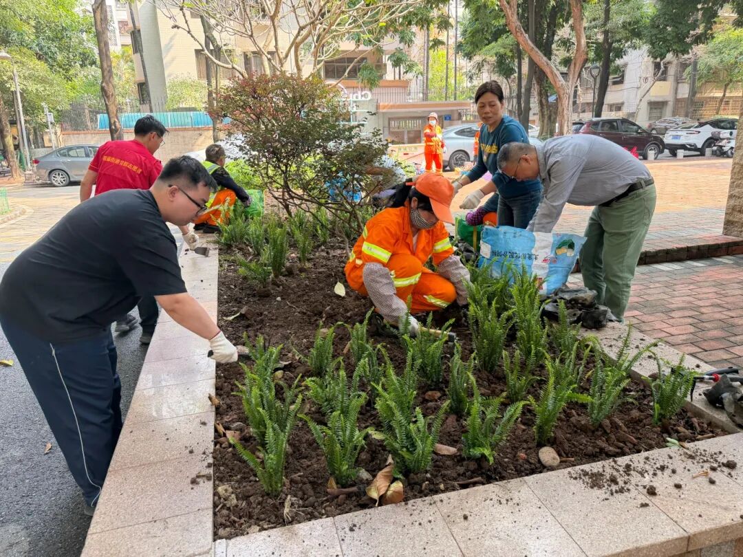 种植现场,各单位工作人员、志愿者分工协作、细致栽种,有序完成整地、扶苗、培土、浇水等工作,确保绿植栽得活、长得好、景更美。社区同步落实长效管护机制,引导居民共同爱绿护绿、共治共享,让绿色美景常驻小区。