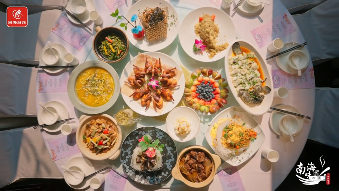 香焗水乡百合、里水霸王鸭、红烧白切乳鸽、钵仔焗禾虫、棠溪蔗香茅焗水乡鳗鱼……整桌宴席将传统粤菜与里水本土风物创新融合,解锁味蕾新体验。