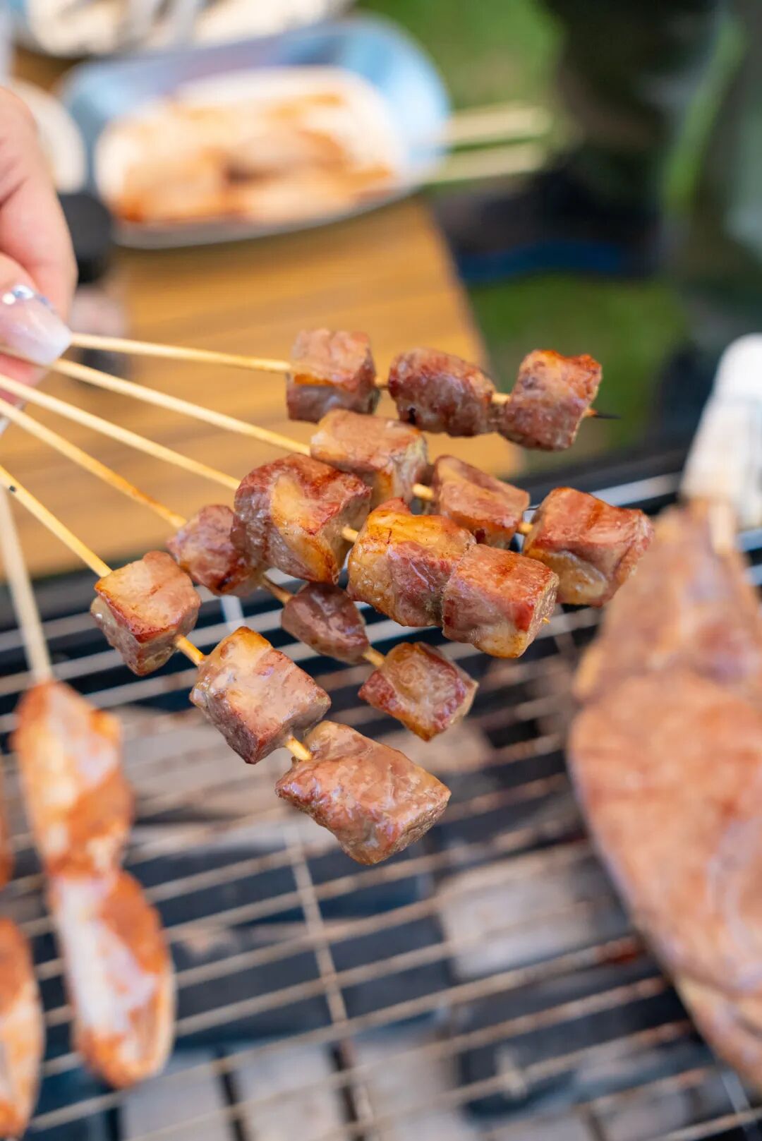 看着烤盘上滋啦啦的烤肉
