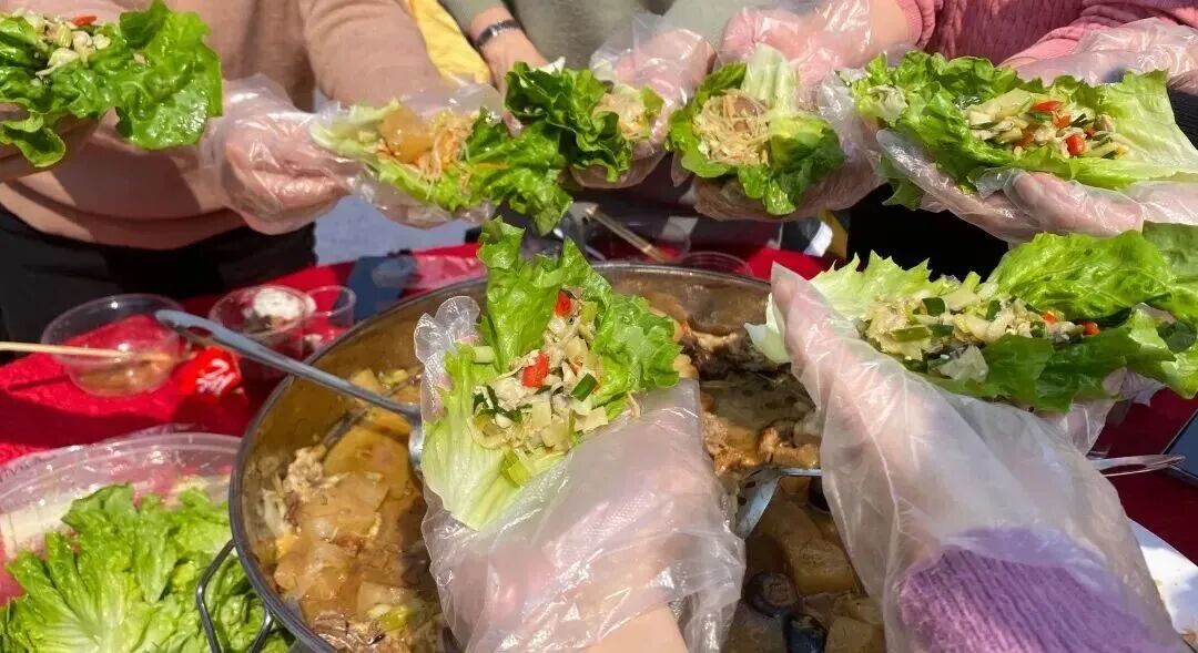 如果比赛进程顺利,来到收官阶段,那就是我们展示“官窑生菜包”智慧的时候了。这道菜,讲究的是食材丰富、包法巧妙,最后圆圆满满,一口吃下。