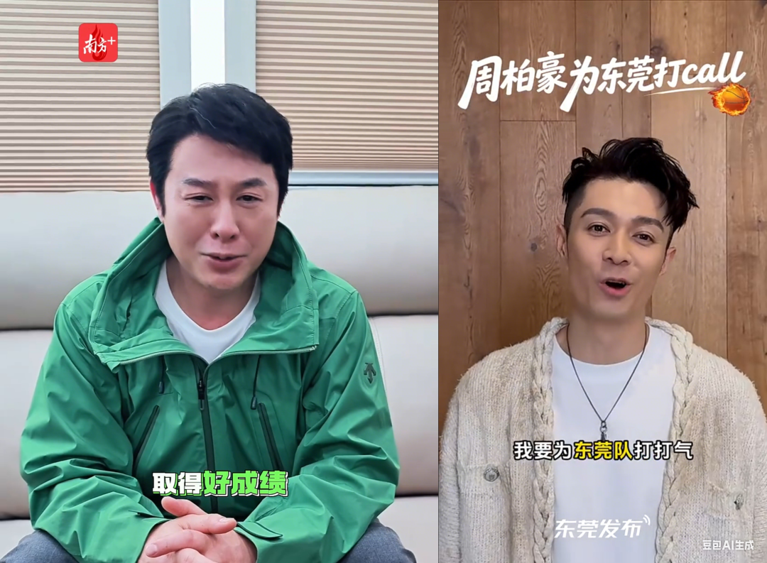 张颂文为韶关主场对阵梅州的赛事发声,既祝福家乡队伍赛出佳绩,也寄语客场作战的梅州队尽情发挥。周柏豪则为篮球传统劲旅东莞队站台,力挺球队冲击队史第 11 冠,全程为粤 BA 赛事与东莞队加油助威。