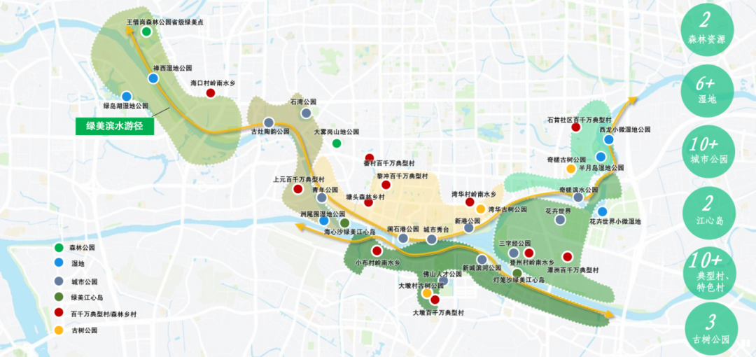 王借岗森林公园-洲尾围湿地公园-青年公园-佛山新城滨江湿地公园-半月岛湿地公园