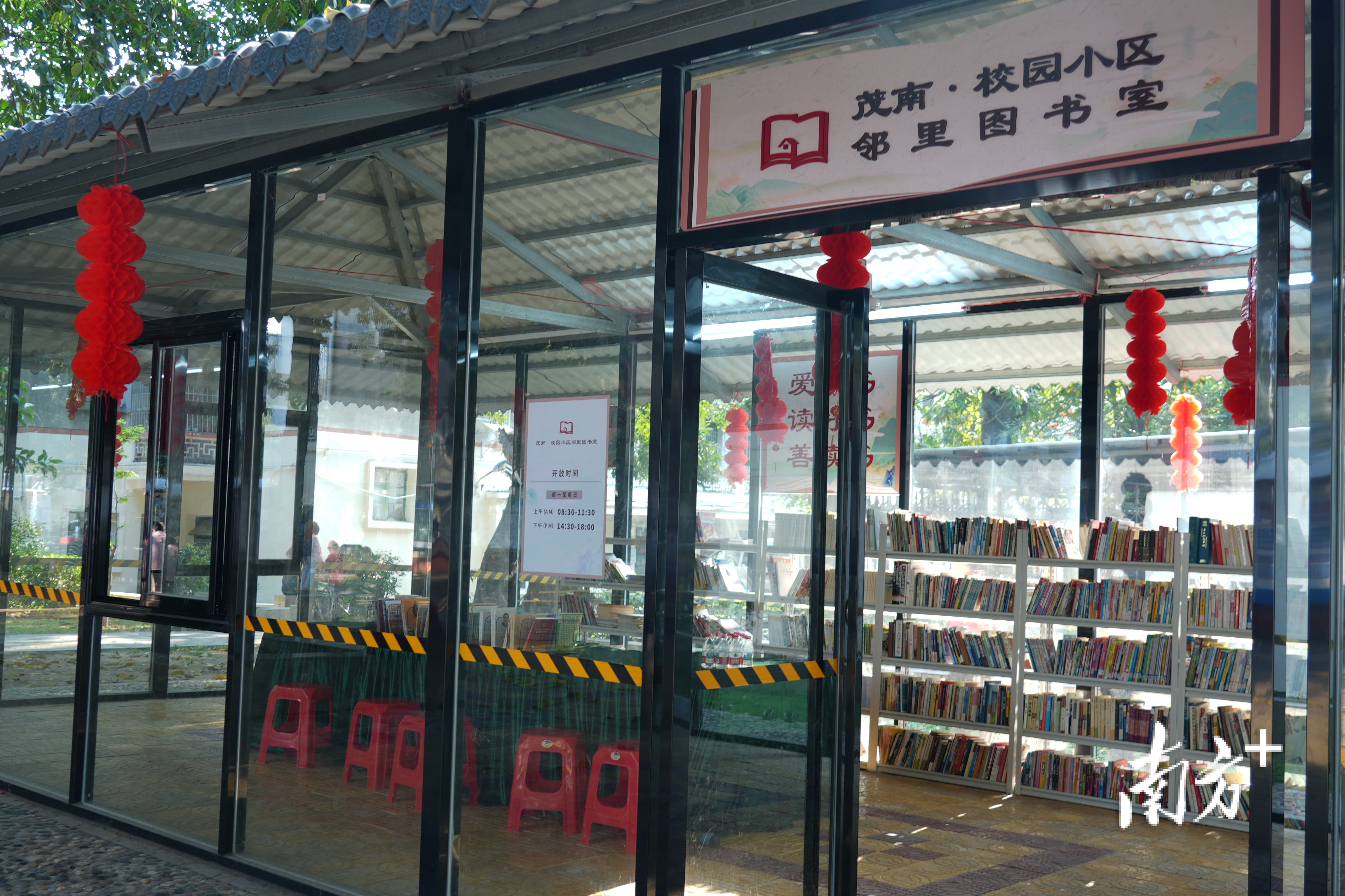 “校园小区邻里图书室”由一处敞篷改造成玻璃房,窗明几净。叶洁 摄