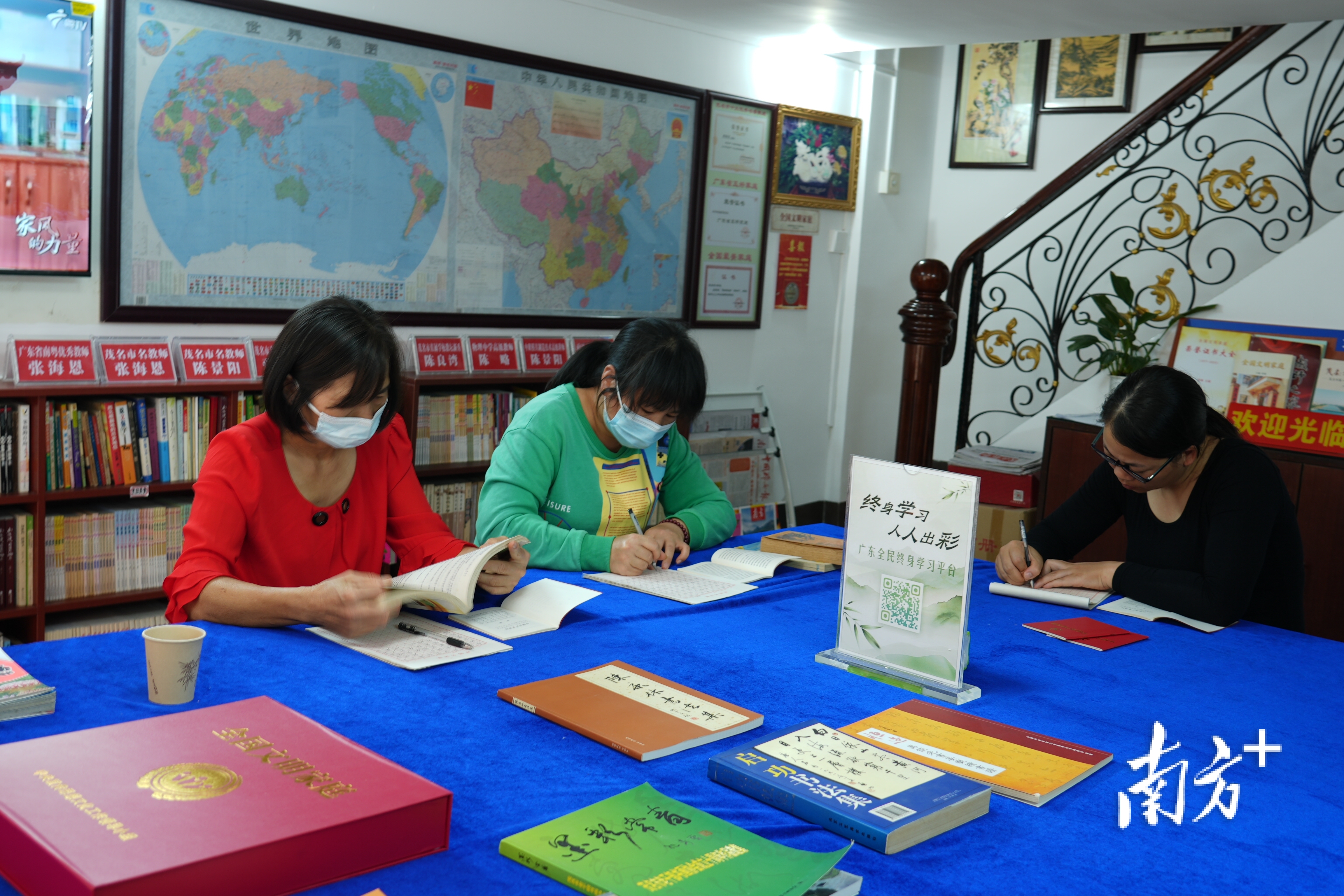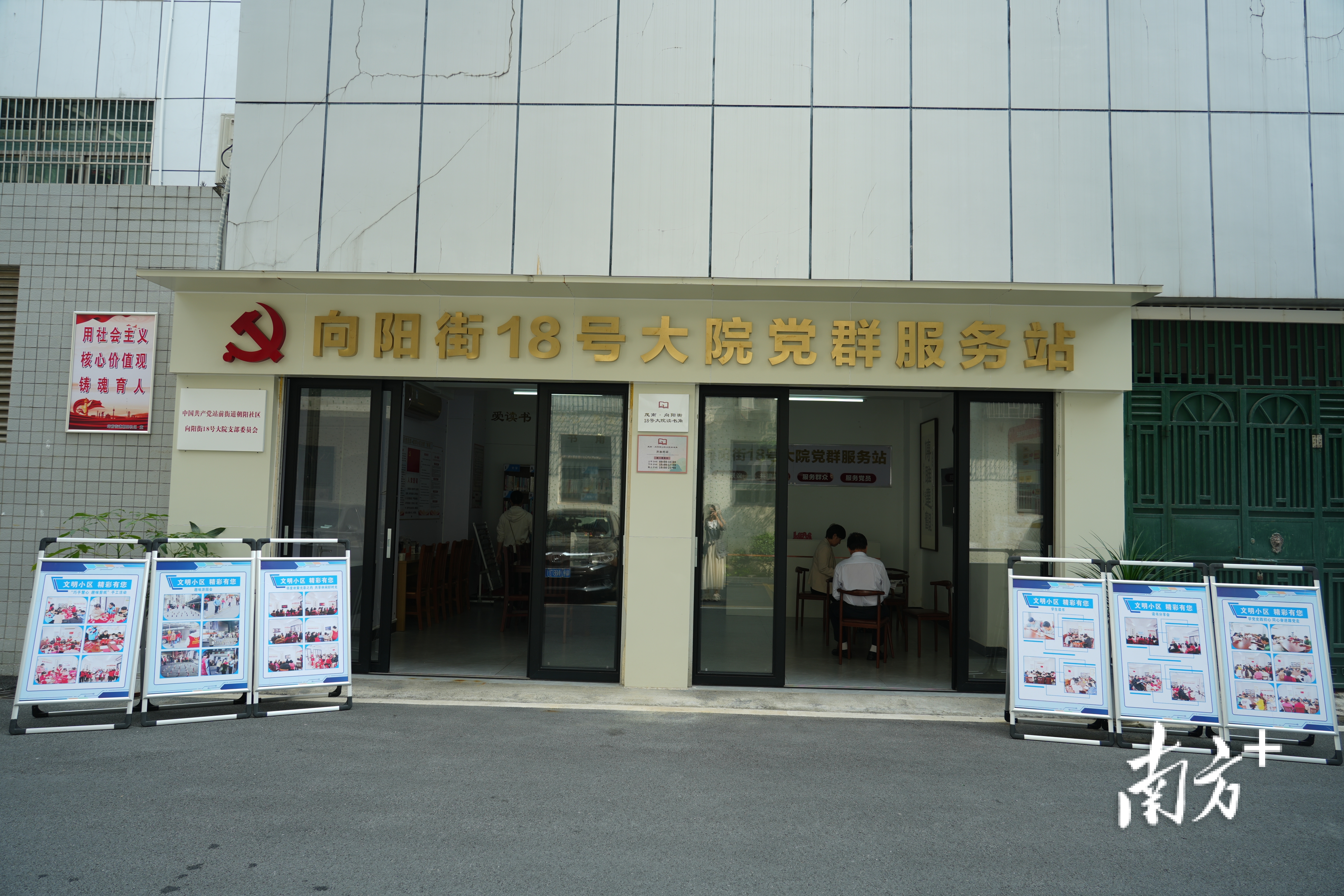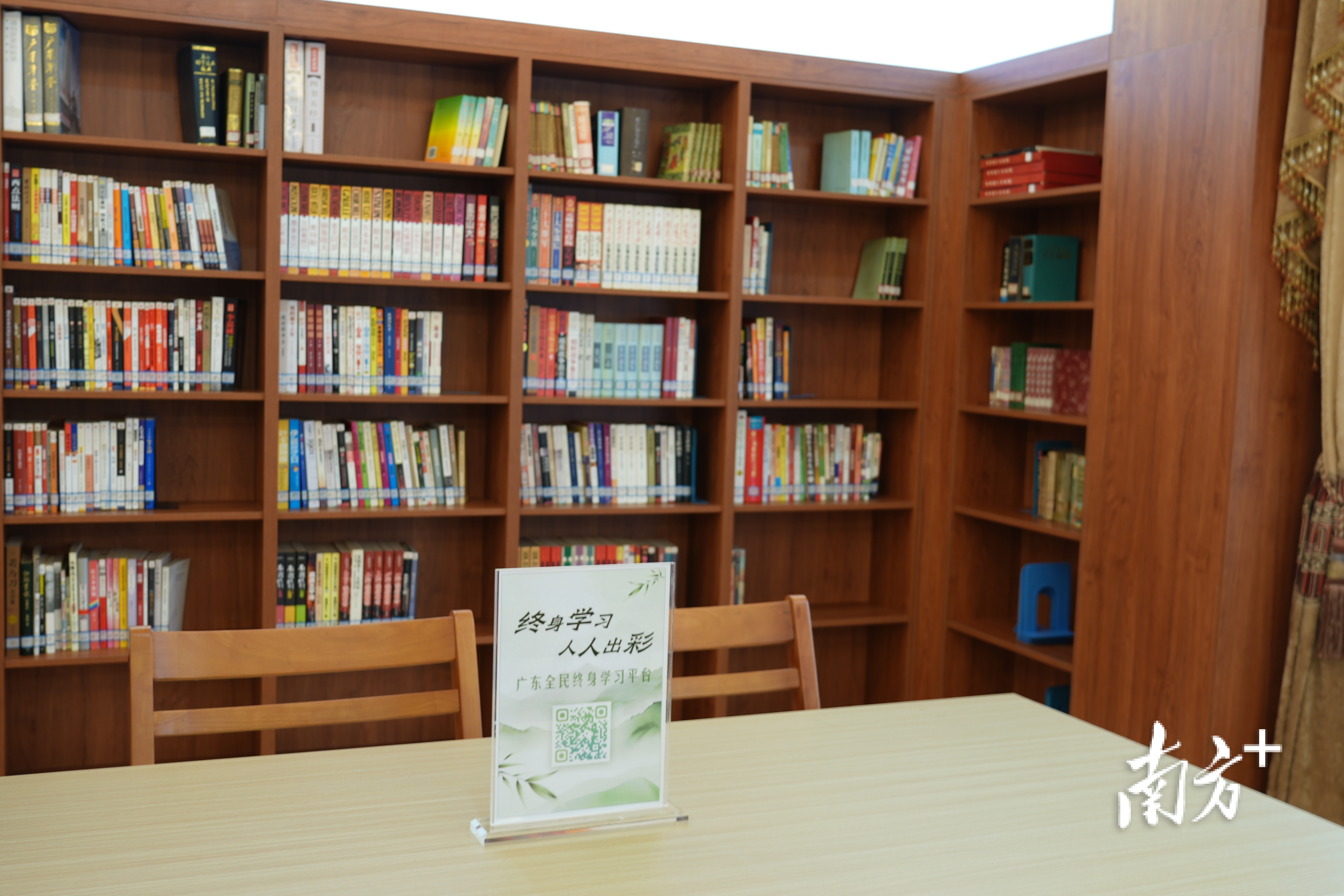 每处书香小区都放置了“广东全民终身学习平台”二维码,供大家线上学习。图为茂名海关小区文化驿站。叶洁 摄