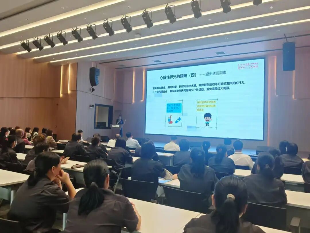 随后的健康科普讲座环节,心血管主任医师卢剑华讲解心脏性猝死预防知识,为职工筑牢生命防线;中医师罗洁君从中西医结合视角分享职场健康长期守护技巧;康复主任医师刘锦灿针对企业职工久坐少动的工作特点,细致讲解颈肩腰痛防治方法,三场干货满满的讲座让职工们受益匪浅。