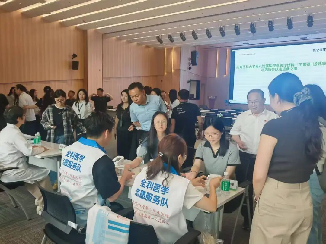 活动伊始,医院志愿服务队与企业支部开展党建交流,伊之密股份有限公司党委书记曾继华介绍党建引领企业发展情况,带领服务队参观生产环境、深入了解职工健康需求,双方围绕党建共建、健康服务等内容深入探讨,为后续医企合作筑牢基础。“此次活动得到了政府部门的指导,南方医科大学第八附属医院充分发挥医疗专业优势,将优质医疗资源与实用健康知识送到生产一线,目的除了提升企业职工的健康意识和自我保健能力外,更希望以党建为引领深化医政企协同发展内涵”。南方医科大学第八附属医院党委书记曹蓓表示。