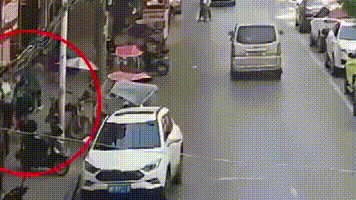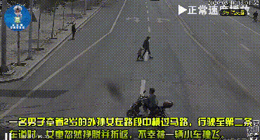 ▲一小车行驶过程中与左侧猛跑横过道路的8岁女孩发生碰撞,造成8岁女孩受伤。