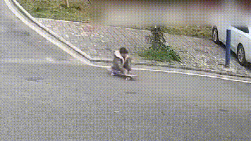 ▲一名7岁男孩坐着滑板车飞速滑下坡,被经过该路段的一辆小车卷入车底,男孩身体多处受伤。
