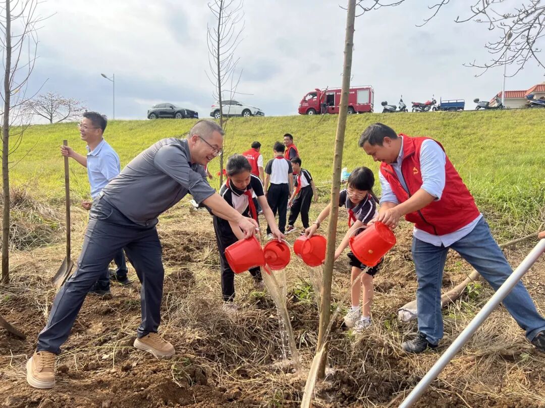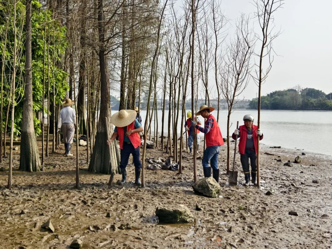 环甘竹溪沿线,党建联建攻坚队的旗帜迎风飘扬,一季度约2000棵新苗在这里扎根,为环两江先行区精品路线铺就绿色底色。龙江镇联动顺德家具协会党总支,在左滩沿岸种下一片新绿,为江岸添彩增色。沙富村,三天两场植树活动,党员带头挥锹,巾帼志愿者扶苗,退伍军人培土,学生代表浇水。原本闲置的河涌边角地,如今成了村民点赞的“四小园”,绿意盎然,笑语盈盈。25场植树活动,4351株苗木,1330人次参与——每一锹土、每一桶水,都是对“绿美家园”最朴素的承诺。