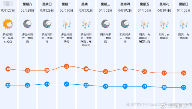 周末起高明转有阵雨