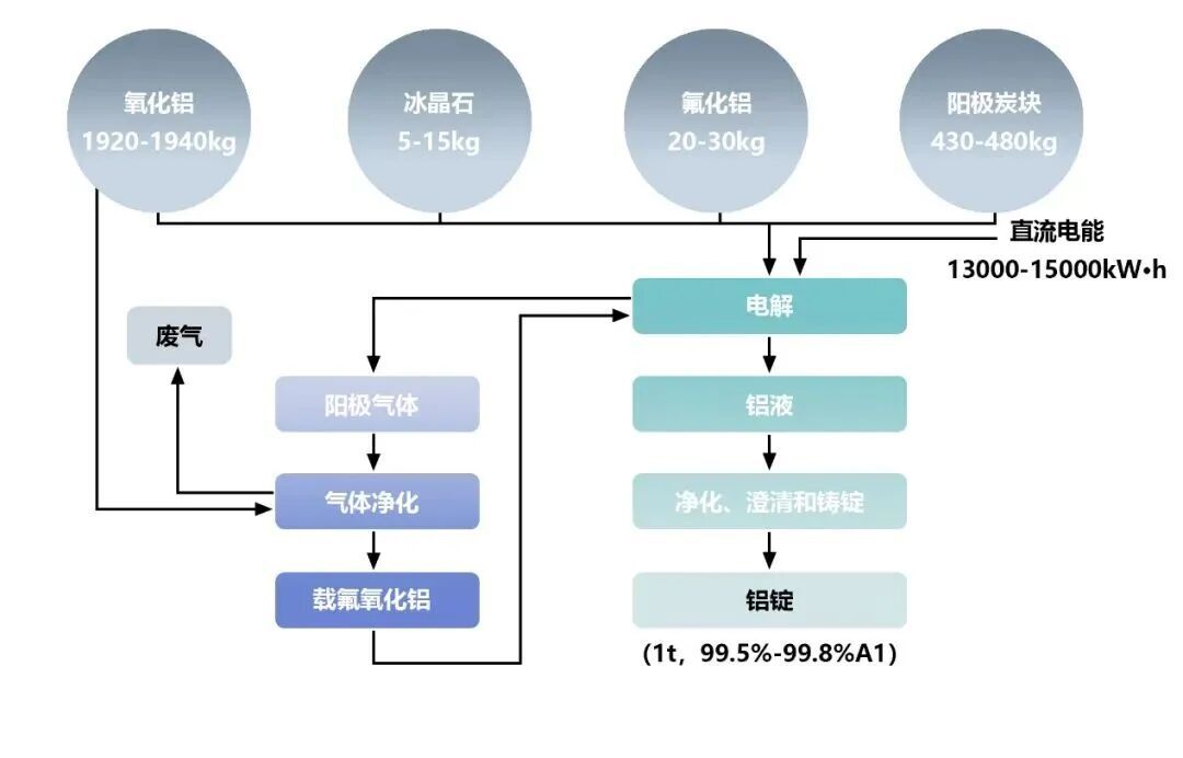 霍尔-埃鲁法电解铝工艺的流程图(环境百科)
