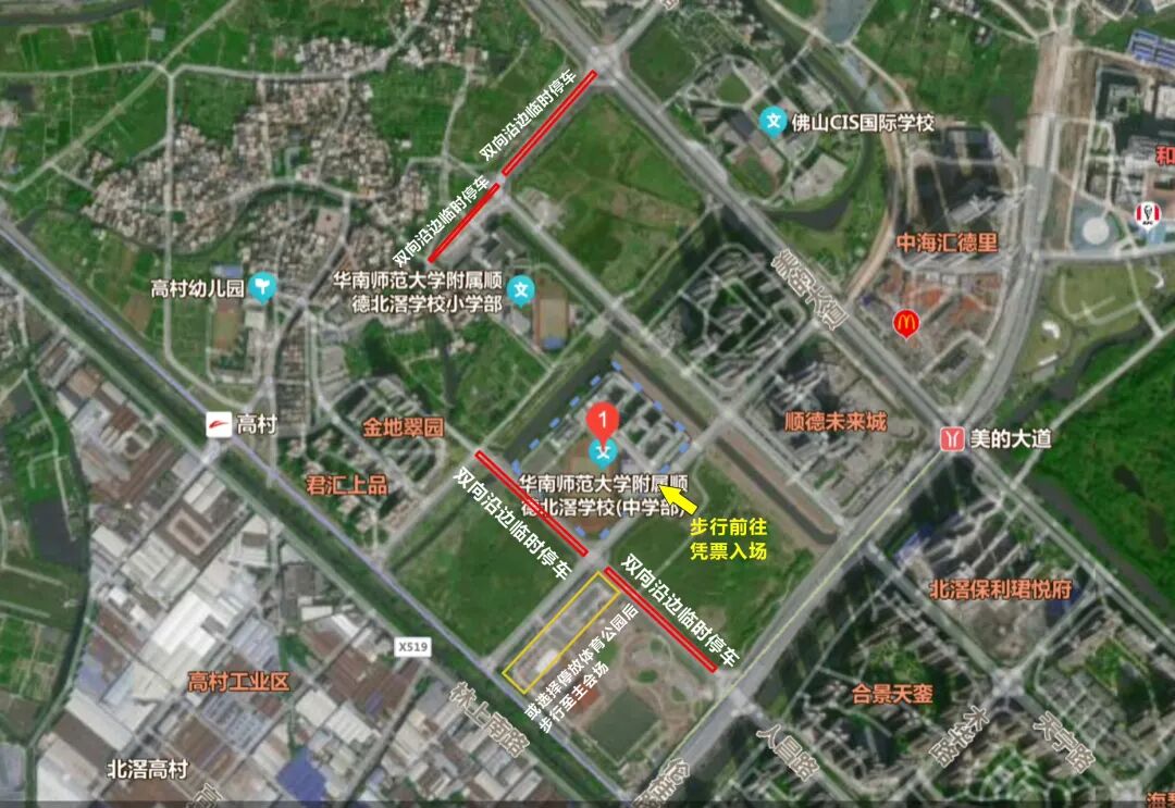3.市民可将车辆停放到体育(儿童)公园停车场(收费)、华附小学停车场、人昌路(双边)或卓越路(双边)临时停放后,步行前往学校正门凭票进入赛场。