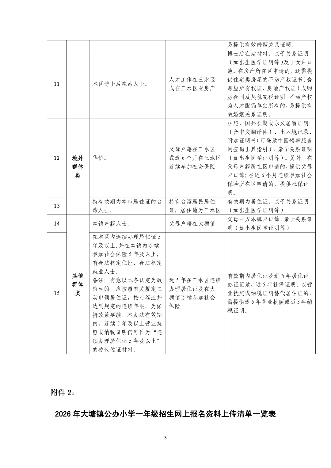3.社保类政策生,比较父(母)一方在大塘镇缴纳社保的年限,时间长的优先。