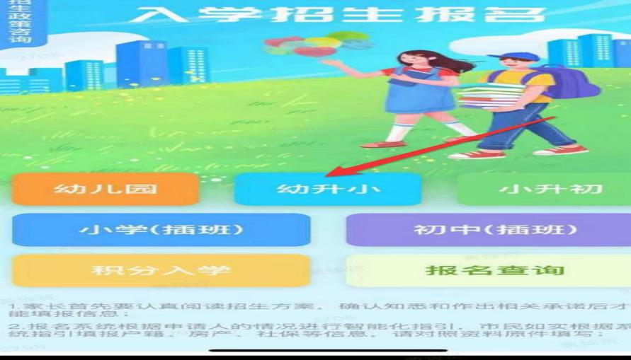 第二步:选择学生本次报名类别的入口(点击幼升小、然后选择普通招生)