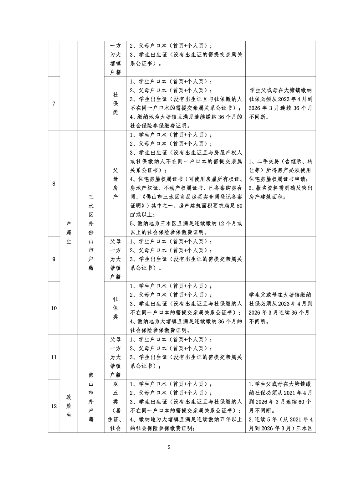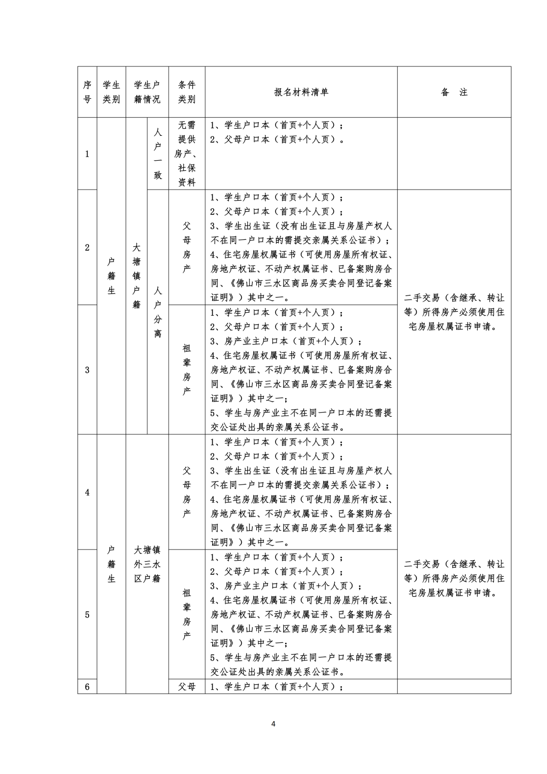 3.佛山市非三水区户籍生(该类学生在学区有房产的先购房者优先,其次录取在大塘镇连续缴纳社保36个月或以上的,购买社保累计时间长的优先)。如果学区内未能录取,将统筹安排到附近的学区入学。