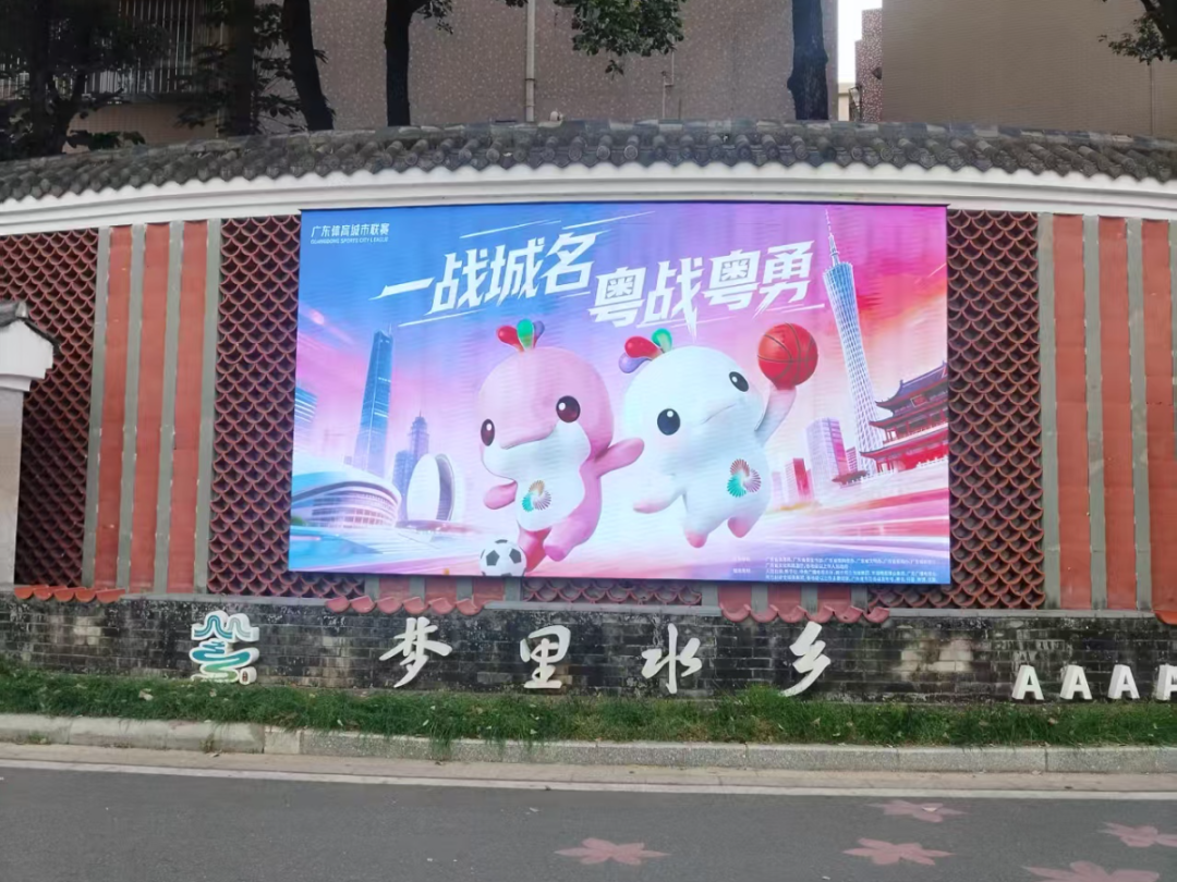 全区各大商圈、景区及社区氛围热烈升温。映月湖环宇城、南海万科广场、黄岐金铂天地、梦里水乡景区以及各镇(街道)村居(社区),LED显示屏全天候滚动播放赛事海报,让市民随处都能感受到粤BA的火热气息。南海大道南海体育馆周边,灯旗随风舞动,道旗整齐有序,醒目亮眼的桁架海报矗立路旁,主场氛围扑面而来。