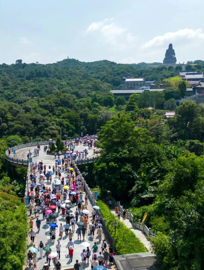上午 登临【西樵山风景名胜区】,感受南海的秀丽风光,参观南海观音像,玩一场刺激的丛林飞跃