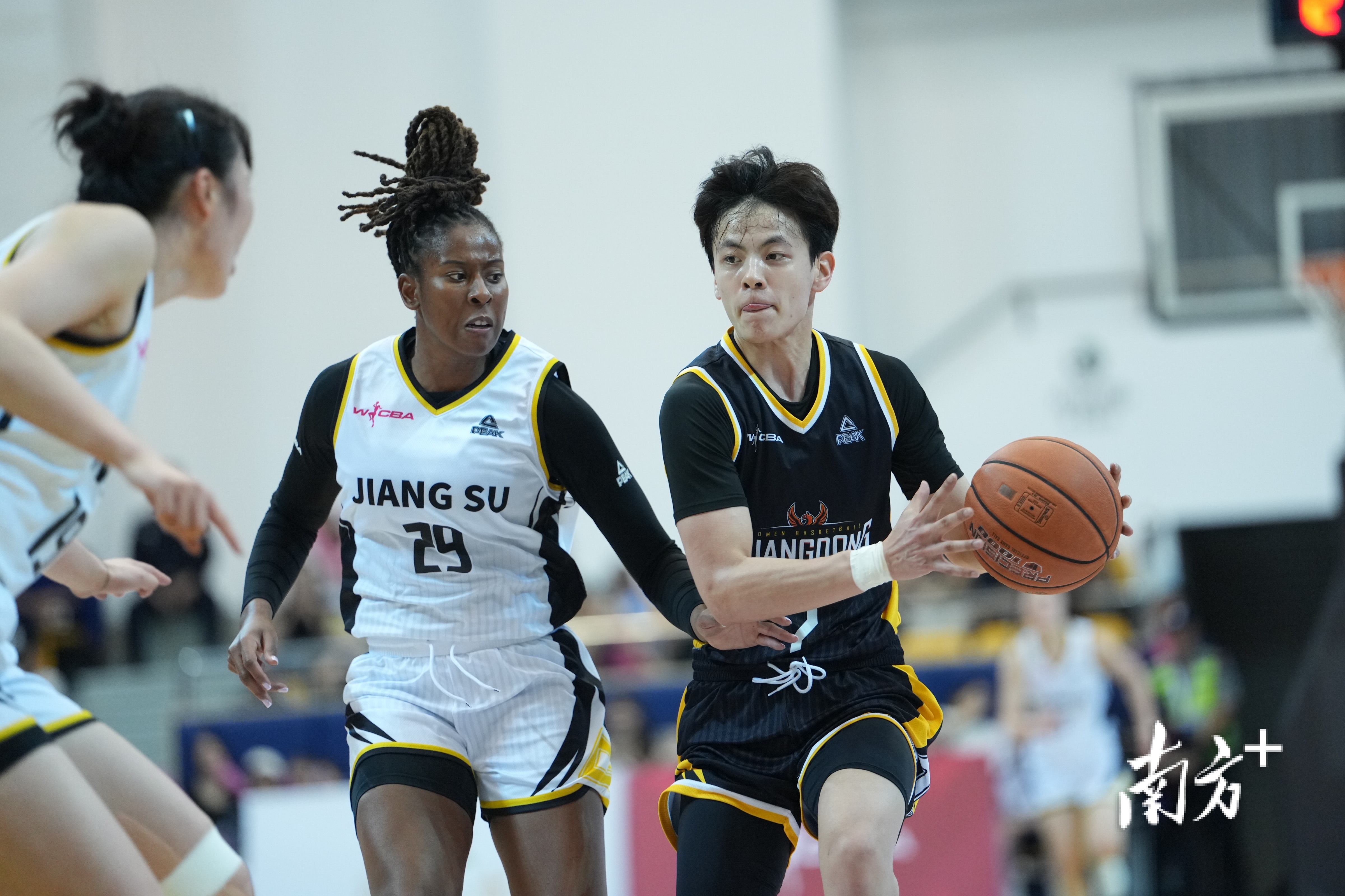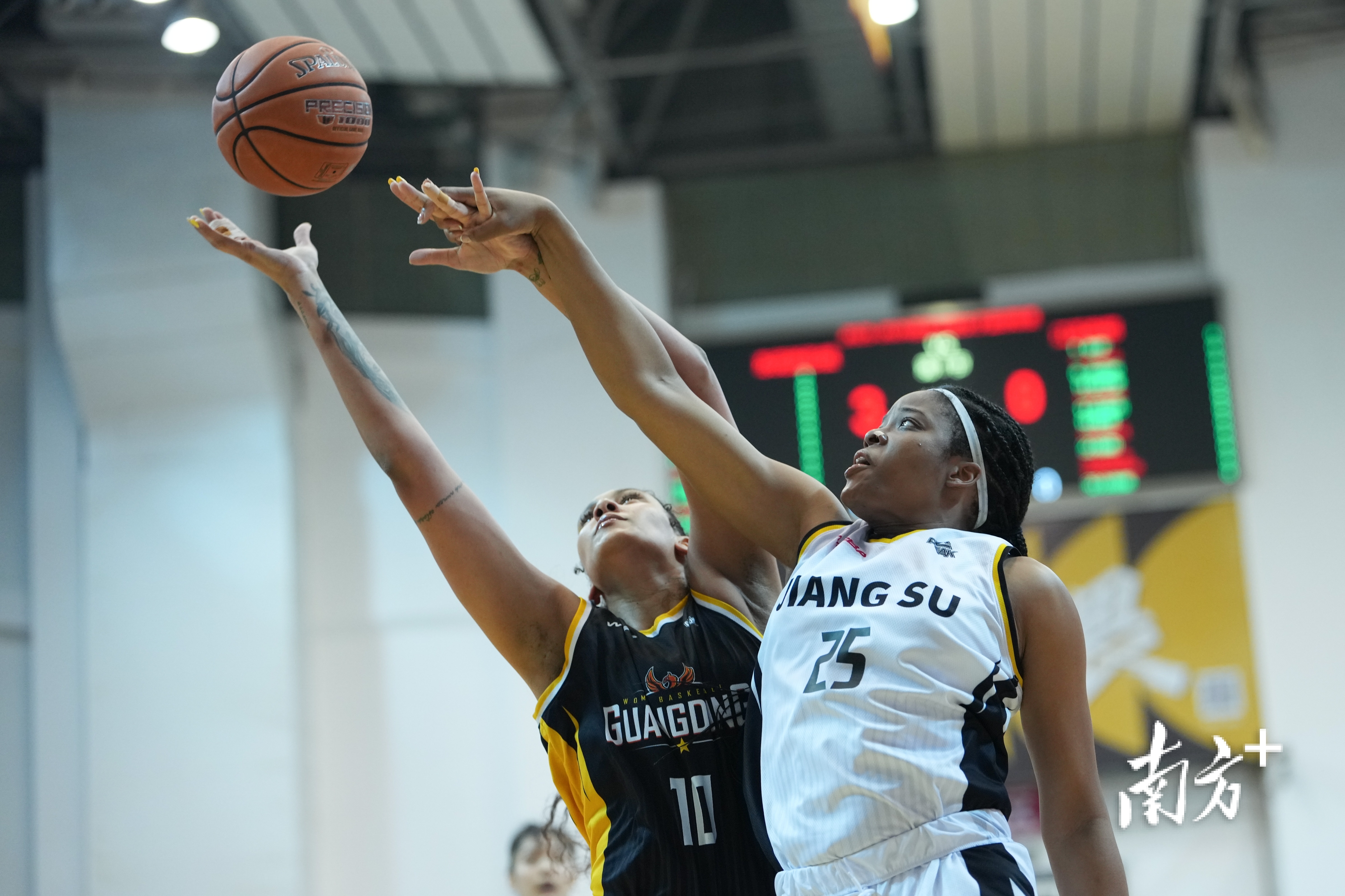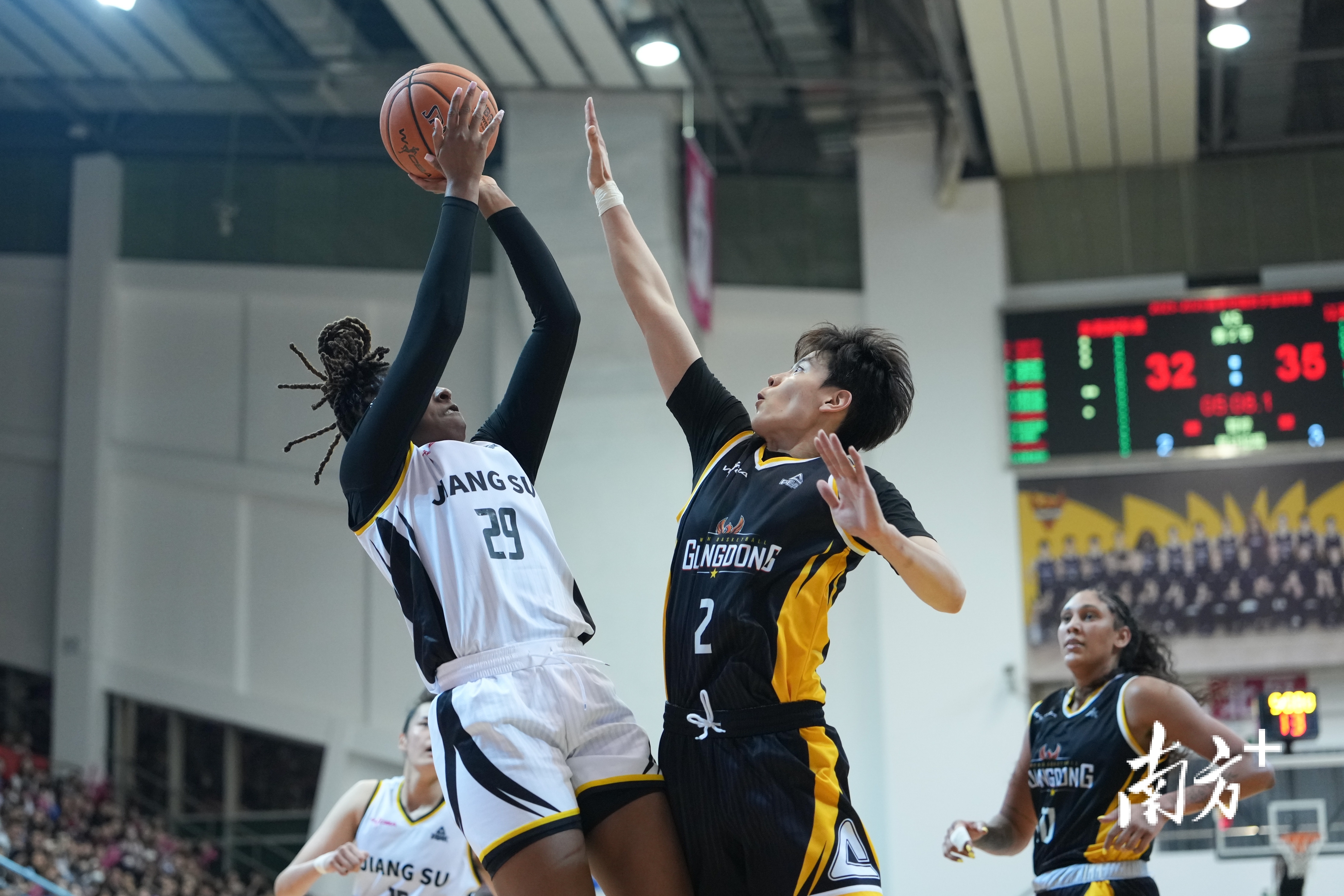 首节比赛杨舒予以一记远投三分开局,广东女篮率先进入状态,在杨力维的串联下,卡多佐、科利尔接连内外线得分,快速将分差拉开。面对强劲的对手,江苏女篮及时调整状态加强防守,罗欣棫扛起反击大旗,砍下14分将比分反超。首节战罢,广东女篮23:25暂时落后。