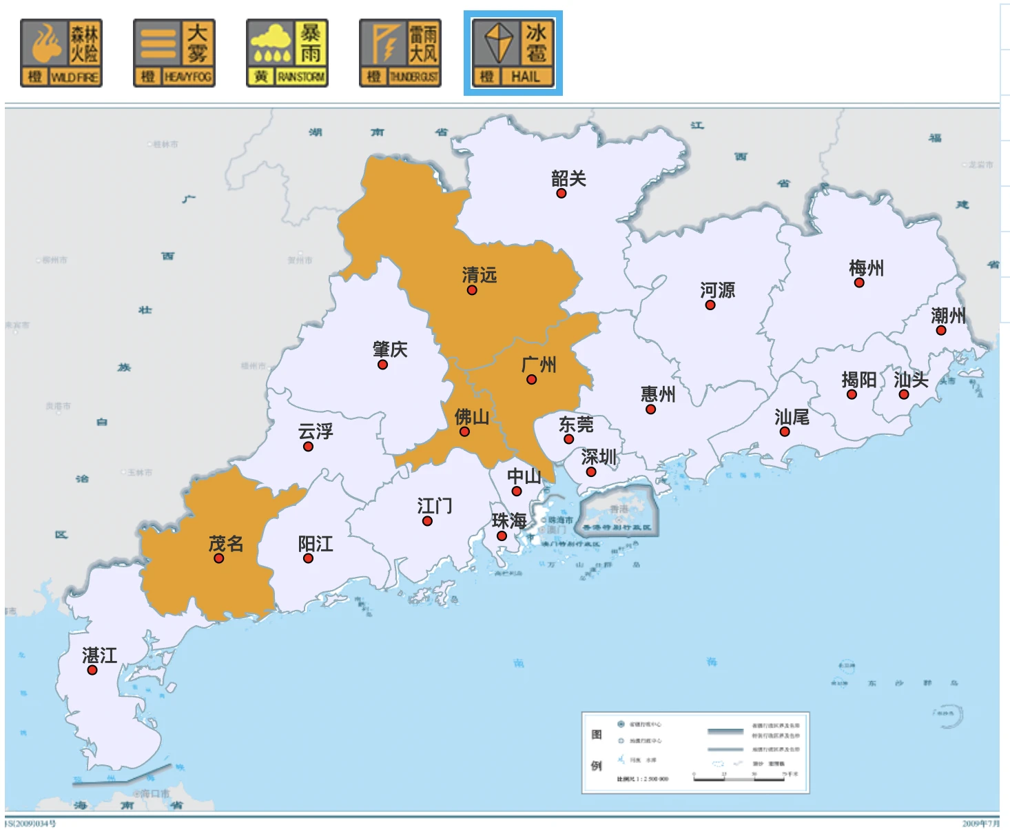 截至3月28日8时20分,广州花都、佛山三水、清远清新、清远清城、茂名高州、茂名信宜等地,正在发布冰雹橙色预警信号。